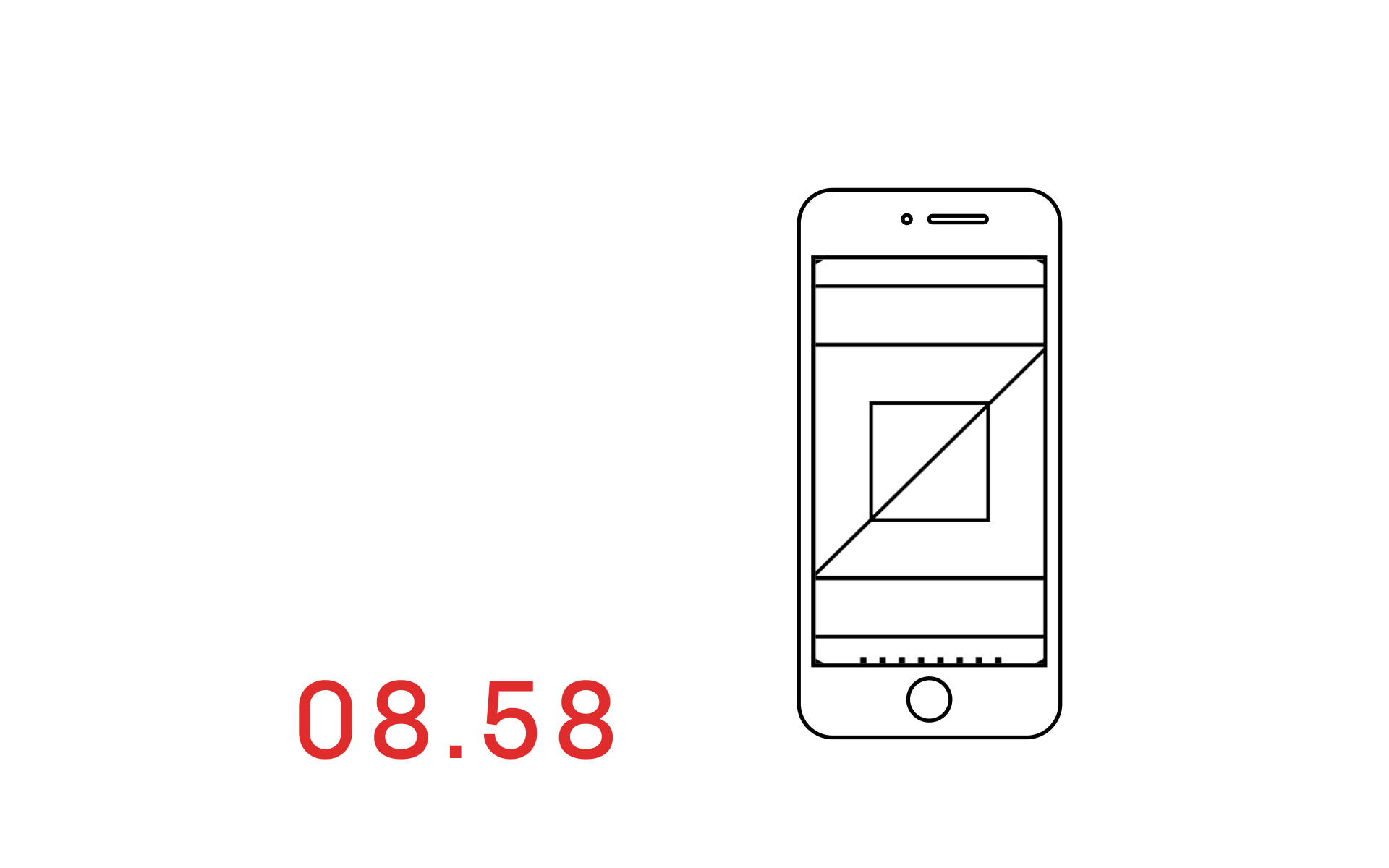 Vytvorila som akýsi šetrič displaya na mobilné zariadenie, ktoré zobrazuje aktuálny čas pomocou elementárnych tvarov, minimálnej animácie a čiernobielej kompozície. // EN: I have created a screensaver for mobile device, that shows the current time with elementary shapes, minimal animation and B&W composition.