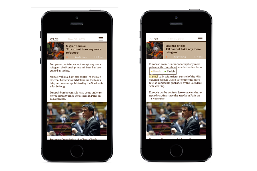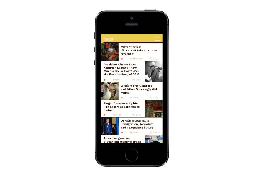 Aplikace na podporu čtení zpravodajství. Aplikace má upozornit a motivovat ke čtení. Stejně tak nastavení aplikace, které má uživateli zpříjemnit a zpraktičnit čtení zpráv.