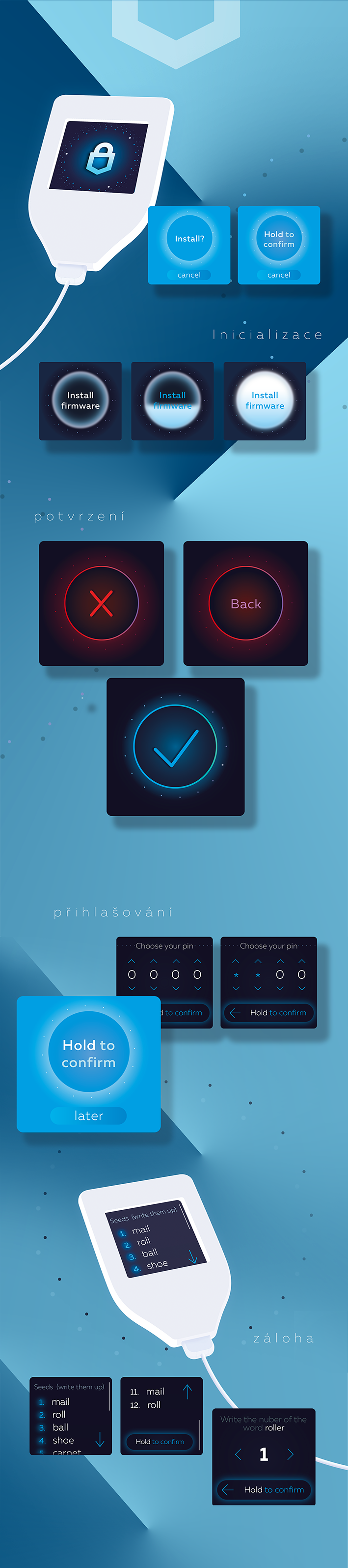 Redesign bitcoinové peněženky Trezor. Další návrh redesignu Šimon Kořán: http://www.digitalnidesign.cz/add/student/koran-simon