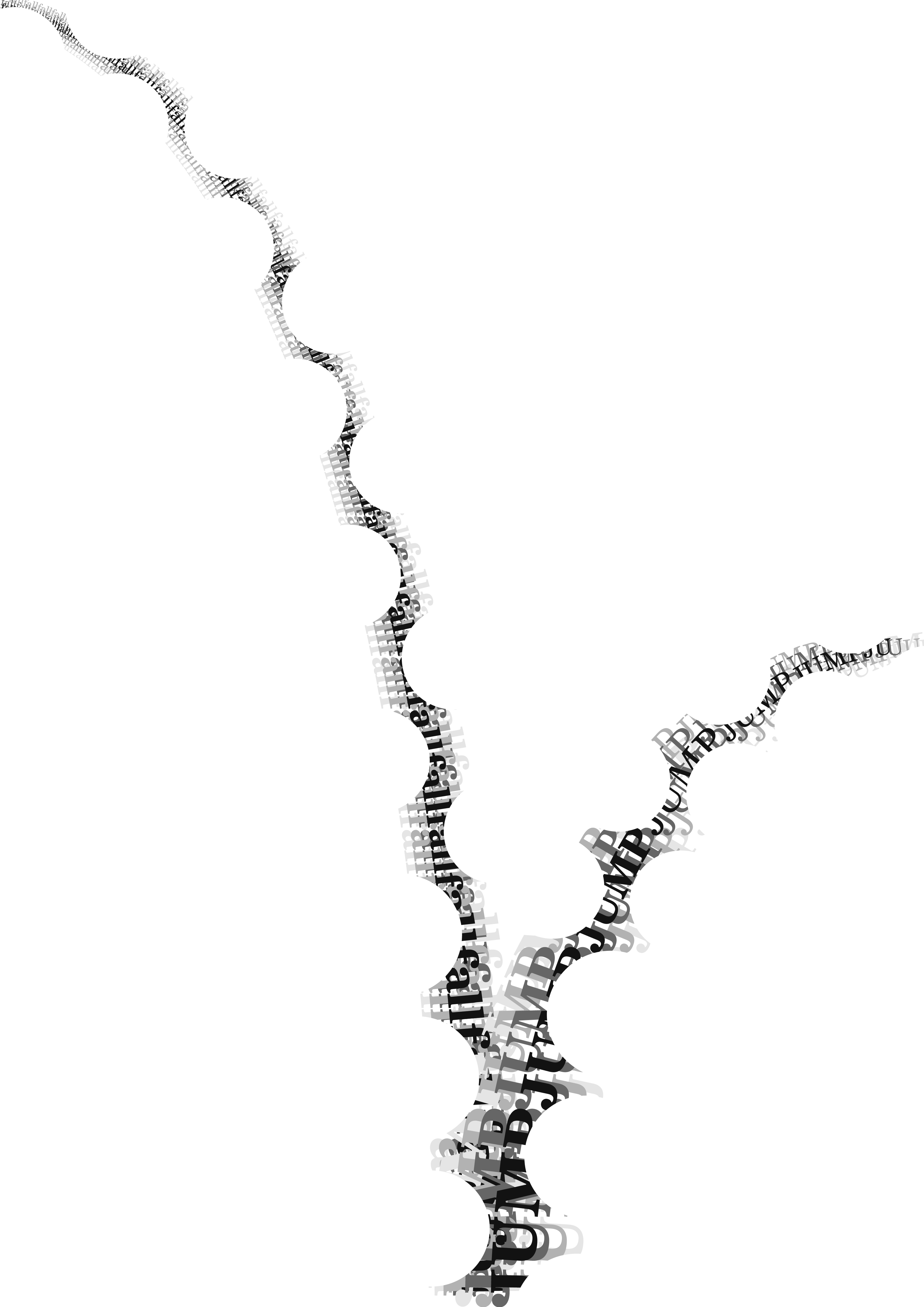 Volný úkol jsme pojal jako typografický plakát do soutěže na téma jump, kde jsem tvořil s pomocí písma odskok míčku, kde jsem typograficky zdůraznil fázi pádu a skoku, kterou narušují bílé kruhy, které z rovné čáry dělají opticky z větší vzdálenosti vlnovku, což evokuje "skok" ve vnímaná tohoto plakátu.