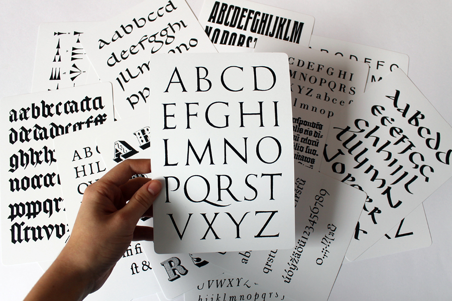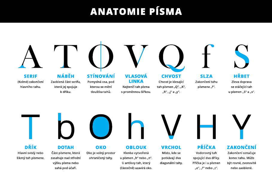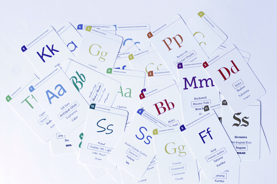 Jako volitelné téma klauzurní práce jsem zvolila tvorbu výukových pomůcek do typografie. Pomůcky jsou určené pro obor Grafický design na střední umělecké škole. Navrhla jsem 3 plakáty a sadu kartiček, které vyučujícímu pomáhají vizuálně doplňovat probírané učivo a podněcují větší aktivitu studentů. Po obsahové stránce jsem vycházela z maturitních otázek z předmětu Písmo.