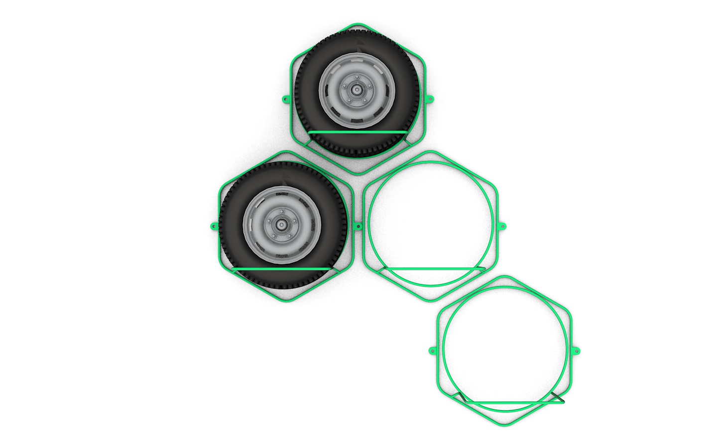 Zadání pro firmu UVAX. Drátěnný závěsný modulový systém pro uskladnění pneumatik.