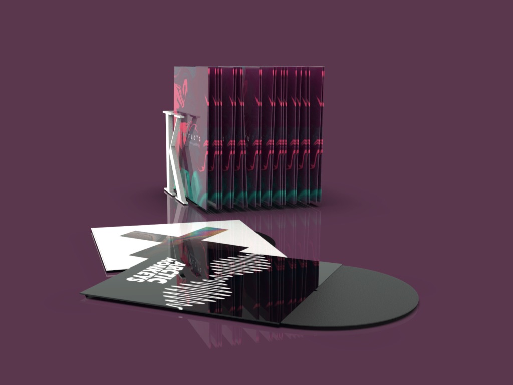 Práca na tému písmo v priestore - typografia. Stojan na platne vytvorený z písmena K. Môže mať rôzne polohy.