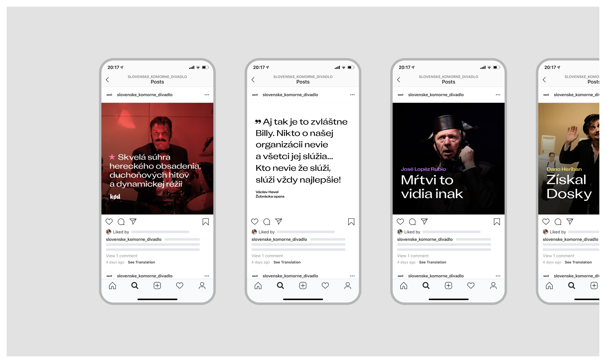 Slovenské komorné divadlo je činohernou scénou, ktorú charakterizuje viac ako 75-ročná tradícia, kvalita a dôležitá úloha vo formovaní slovenského divadelníctva ako aj spoločnosti. Redizajn si dáva za cieľ toto odzrkadliť a pritom rešpektuje možnosti divadla. Je zameraný na digitálnu komunikáciu. Vyznačuje minimalizmom a je tvorený dynamickým variabilným systémom za pomoci farebných akcentov, pretože divadlo vyvoláva rôzne emócie a nie je jednotvárne. Z predošlého loga si prepožičiava portál viditeľný v plagátoch a animáciach.