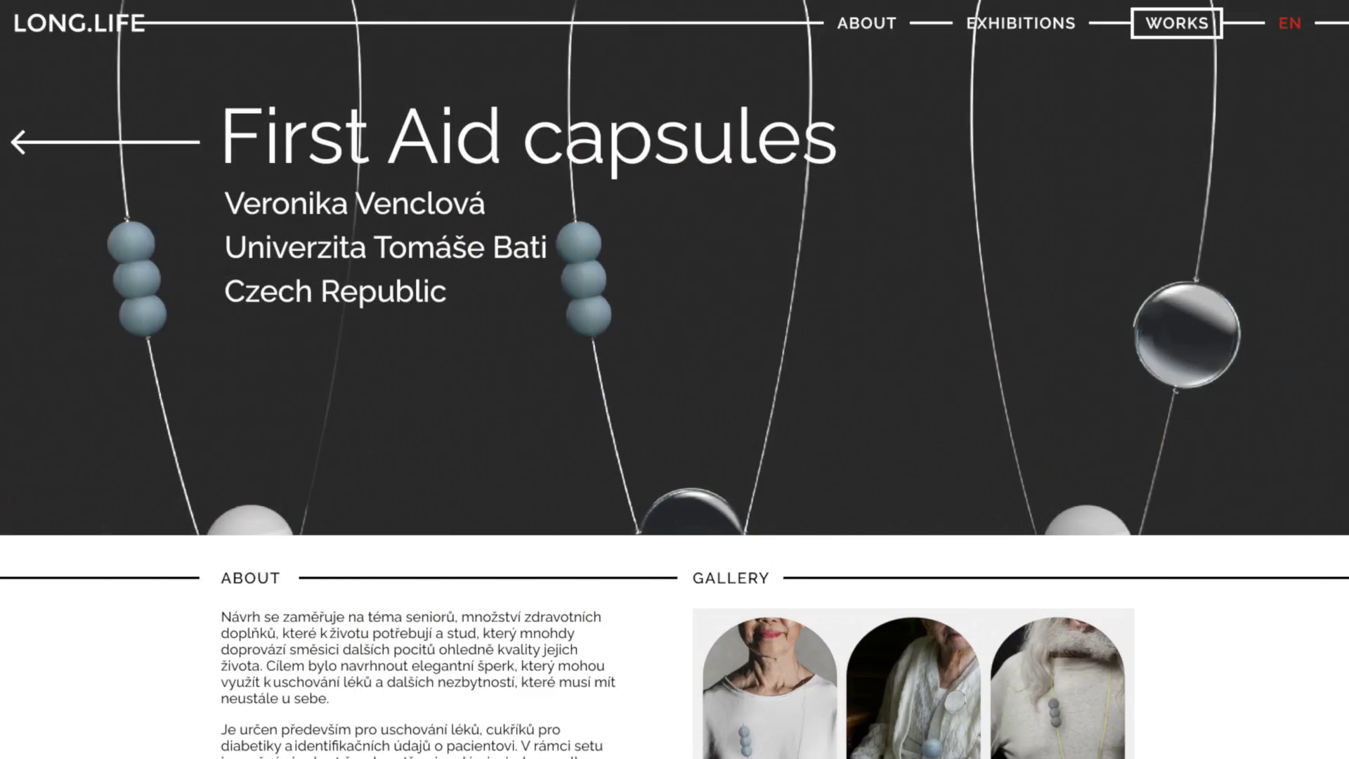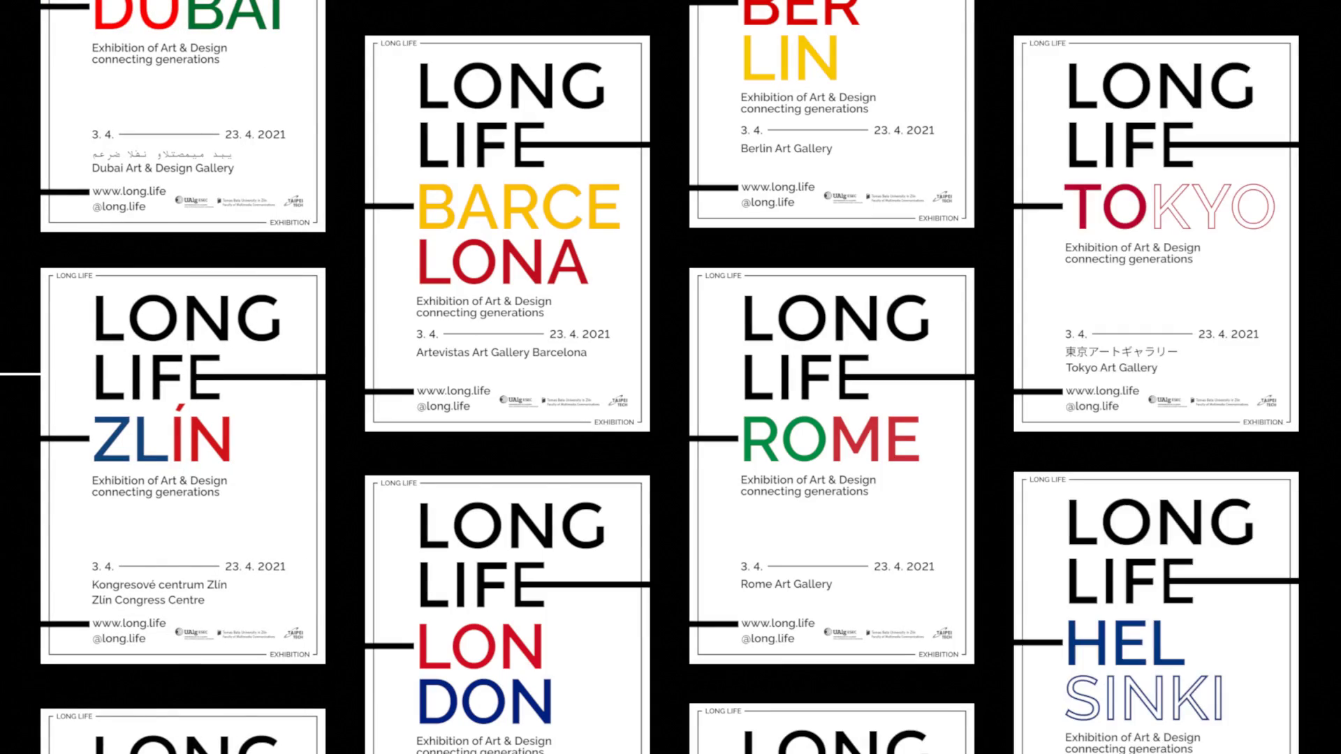 Středobodem mého návrhu je jednoduchý logotyp LONG.LIFE s protaženou střední linií E. Tato linie se objevuje napříč celým vizuálem a symbolizuje dlouhověkost, stabilitu, ale i schopnost přizpůsobit se různým prostředím. Barevnost jsem zvolil čistě černobílou, jednak z důvodu čitelnosti, jednak proto, že projekt funguje hlavně jako médium, ve kterém ostatní designéři sdílí své výstupy, neměl by je tedy vizuálně přehlušit. Součástí návrhu je web, katalog, postery, pozvánka, profily na sociálních sítích a propagační předměty.