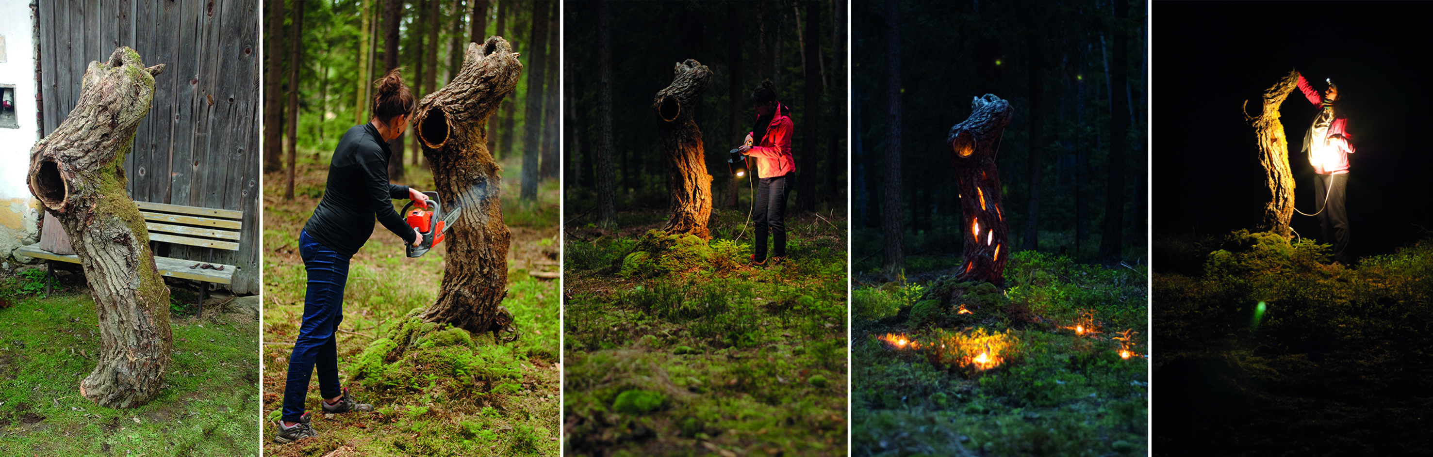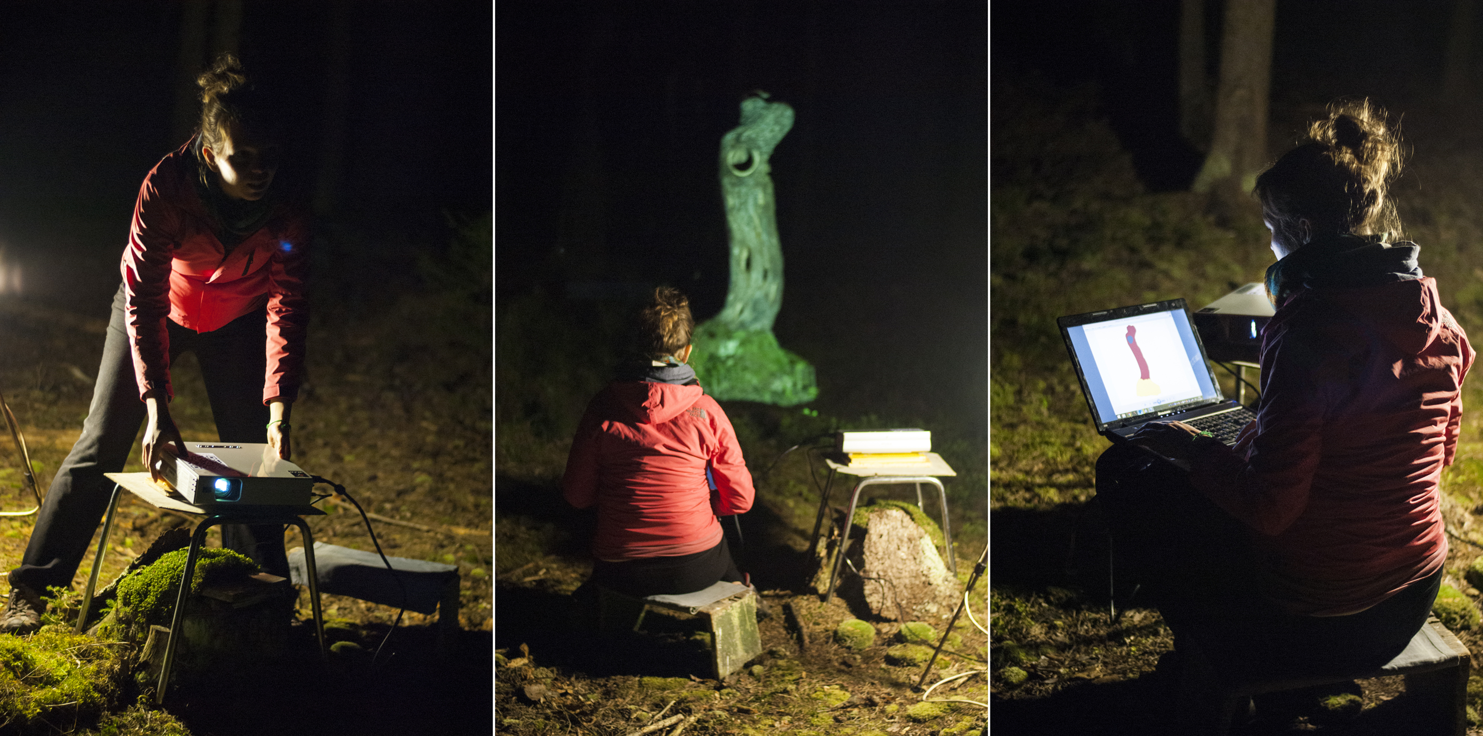Interaktivní vizuální instalace s využitím video mappingu v otevřeném prostoru, prostřednictvím které se snažím poukázat především na daný prostor, na genius loci daného místa. Ukázat paradox naší mysli, kdy každý vidí předměty v prostoru, ale nikdo si nevšímá samotného prostoru. Protože nicota — nic — prostor, se nemůže stát předmětem poznání, rozhodla jsem dát prostoru existenci. „Existovat“ znamená doslovně vystupovat. Vytvořila jsem proto objekt, jakousi sochu, která má ukázat to, že ačkoliv prostor sám nemá žádnou existenci, umožňuje existovat všemu ostatnímu. Tedy i nám lidem. Co se však stane, když přestanete pouze pozorovat objekt, předmět v prostoru a začnete věnovat pozornost i samotnému prostoru? Abych tuto iluzi naší mysli mohla ukázat, použila jsem v instalaci nášlapná tlačítka, která pak mění celé dění v kontextu prostoru a času. Chtěla jsem tím vyjádřit to, aby si lidé uvědomovali prostor kolem sebe. Nepřemýšleli o něm, jen ho jednoduše vnímali.