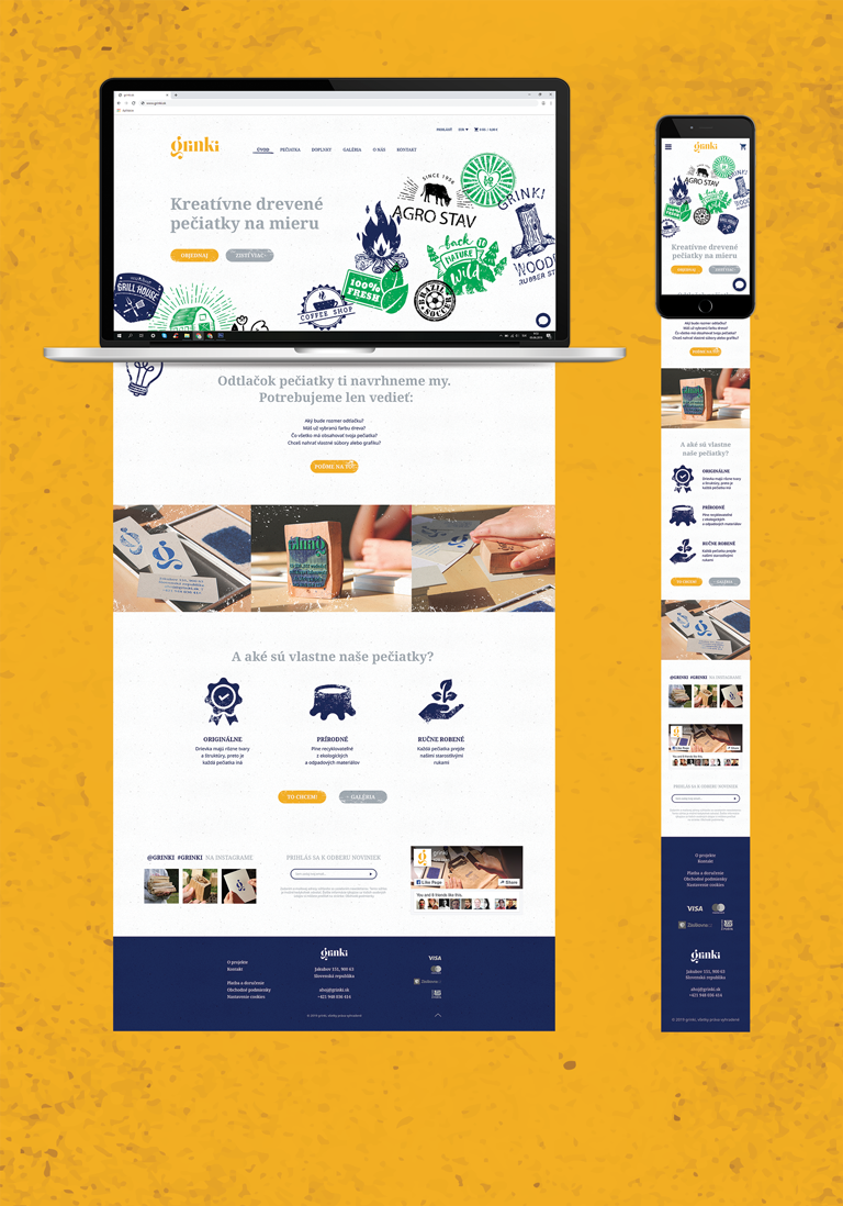 Hlavným cieľom tejto bakalárskej práce je ponúknuť verejnosti on-line službu na vytvorenie kreatívnej pečiatky s grafikou podľa vlastných predstáv. Dennodenne vnímam nárast požiadaviek digitálnych technológií, ale súčasne aj túžbu po návrate k tradičným médiám. Chcela som sa teda venovať prepojeniu tradičného remesla s jeho predajom a propagáciou v online aj off-line sfére. Pomocou webovej stránky prepojenej s e-shopom zákazník v jednotlivých krokoch formulára zadáva požiadavky na grafiku, ktoré následne odošle na odborné spracovanie. Služba ponúka dizajnérsky zaujímavú ekologickú, prírodu nezaťažujúcu alternatívu k plastovým samonamáčacím pečiatkam a tým sa snaží zatraktívniť širokej verejnosti klasickú drevenú pečiatku. Moderný šat tradičnej pečiatky je navrhnutý tak, aby sa samostatná pečiatka mohla stať nielen pomocníkom, ale aj dekorácia stola.