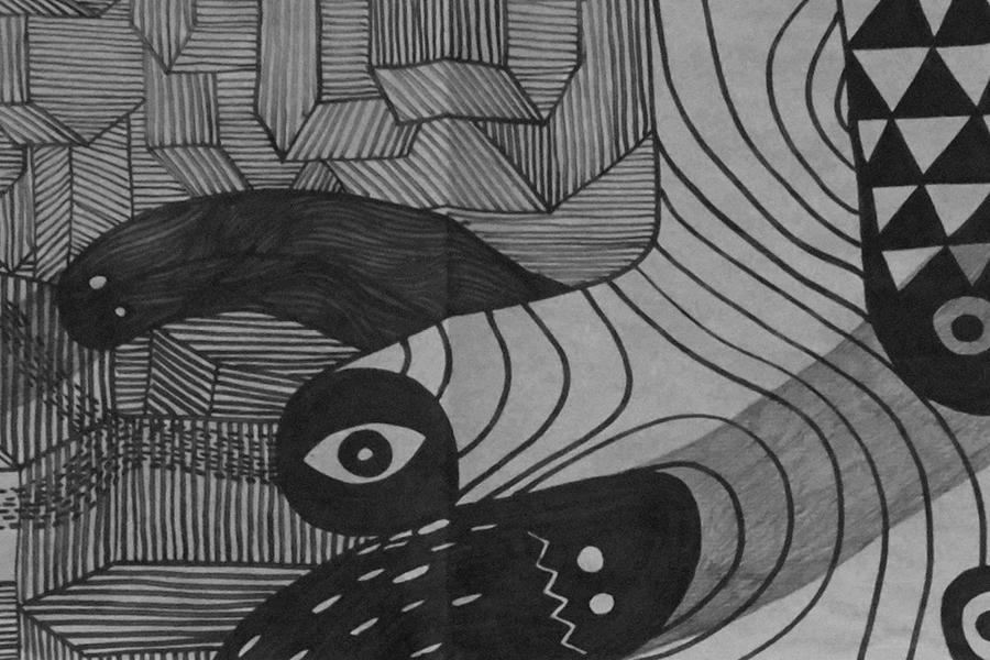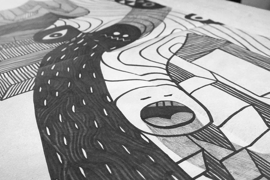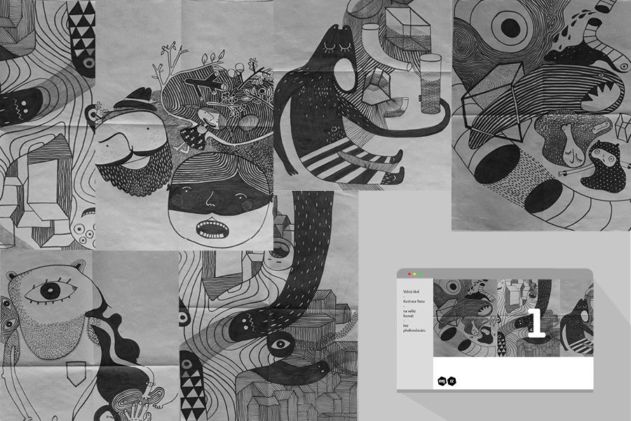 Ilustrace vznikaly nahozeně bez příprav a předkreslování tužkou.
