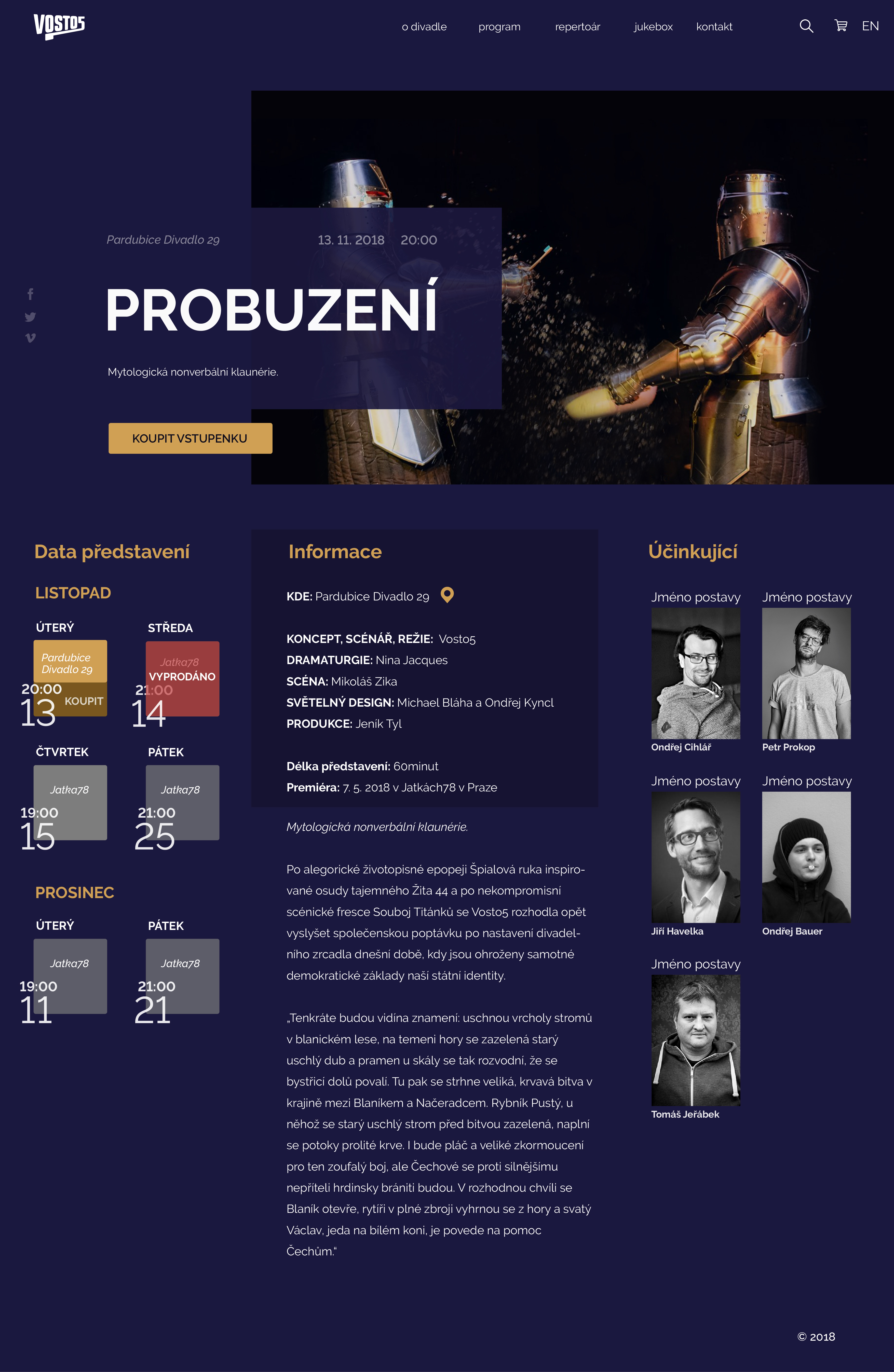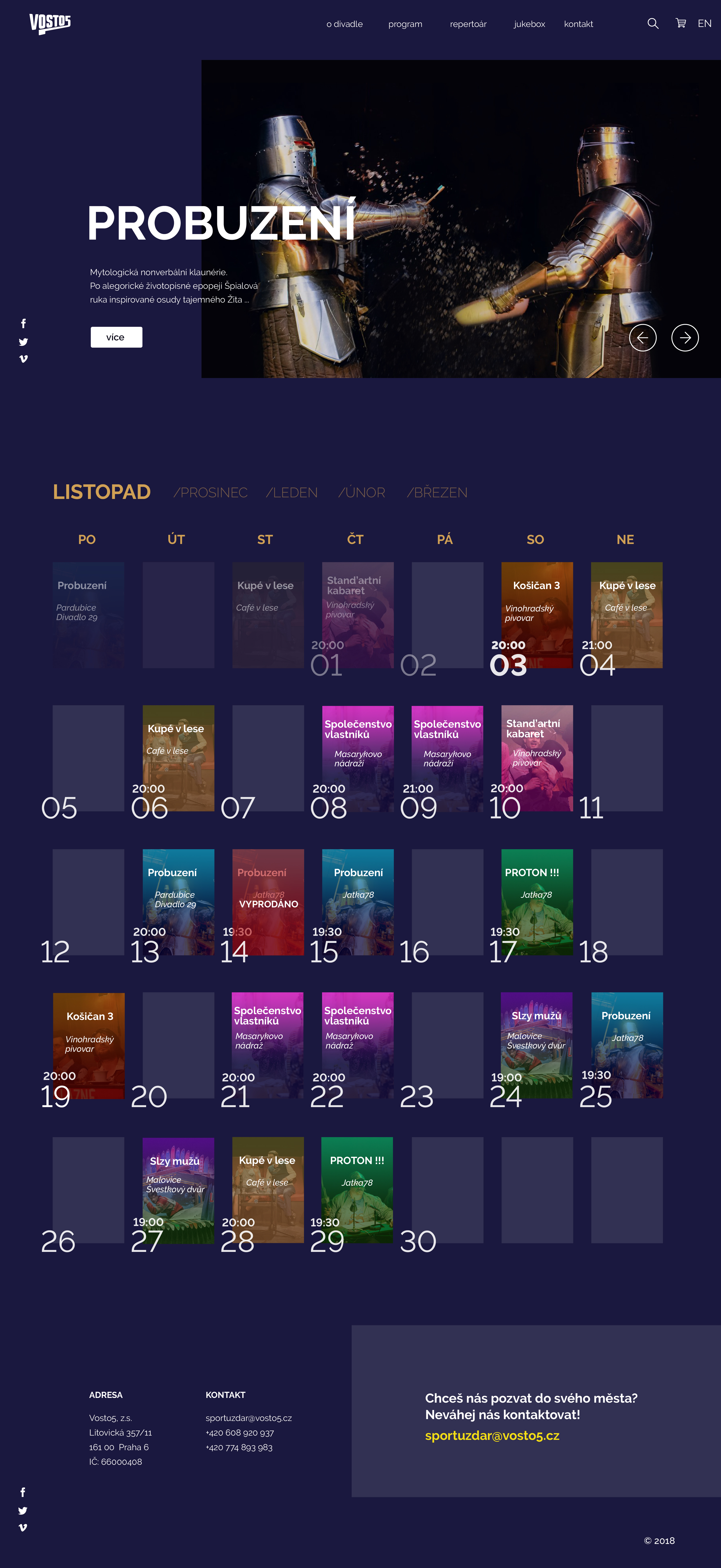 Návrh webu pro divadelní skupinu Vosto5. Zaměřila jsem se kalendář, který je inspirován "standardním tištěným".