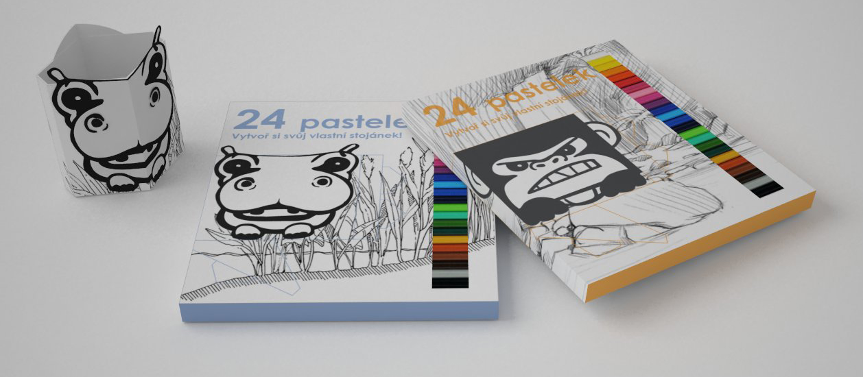 Obal na pastelky pro děti přetvořený v tužkovník.