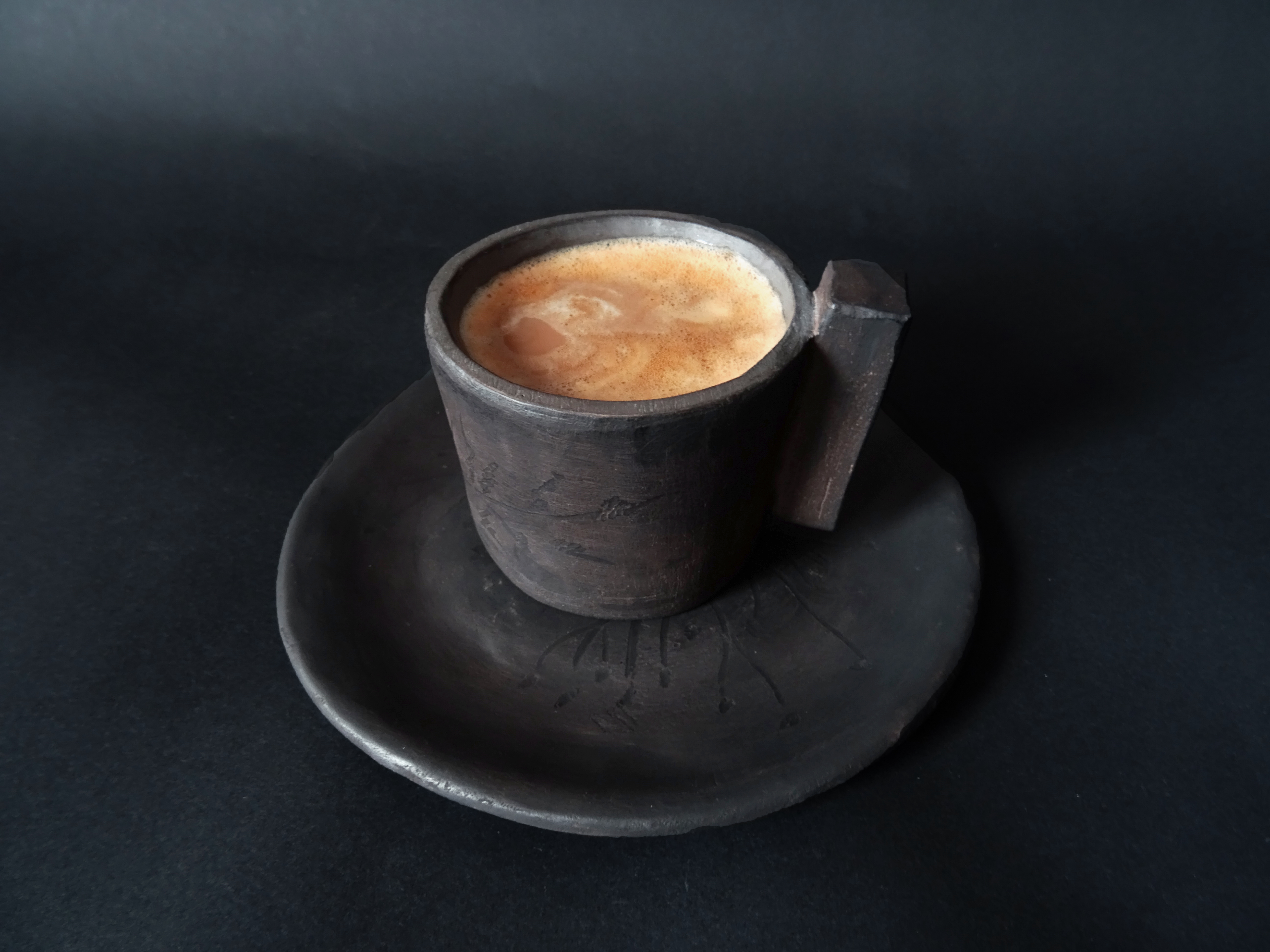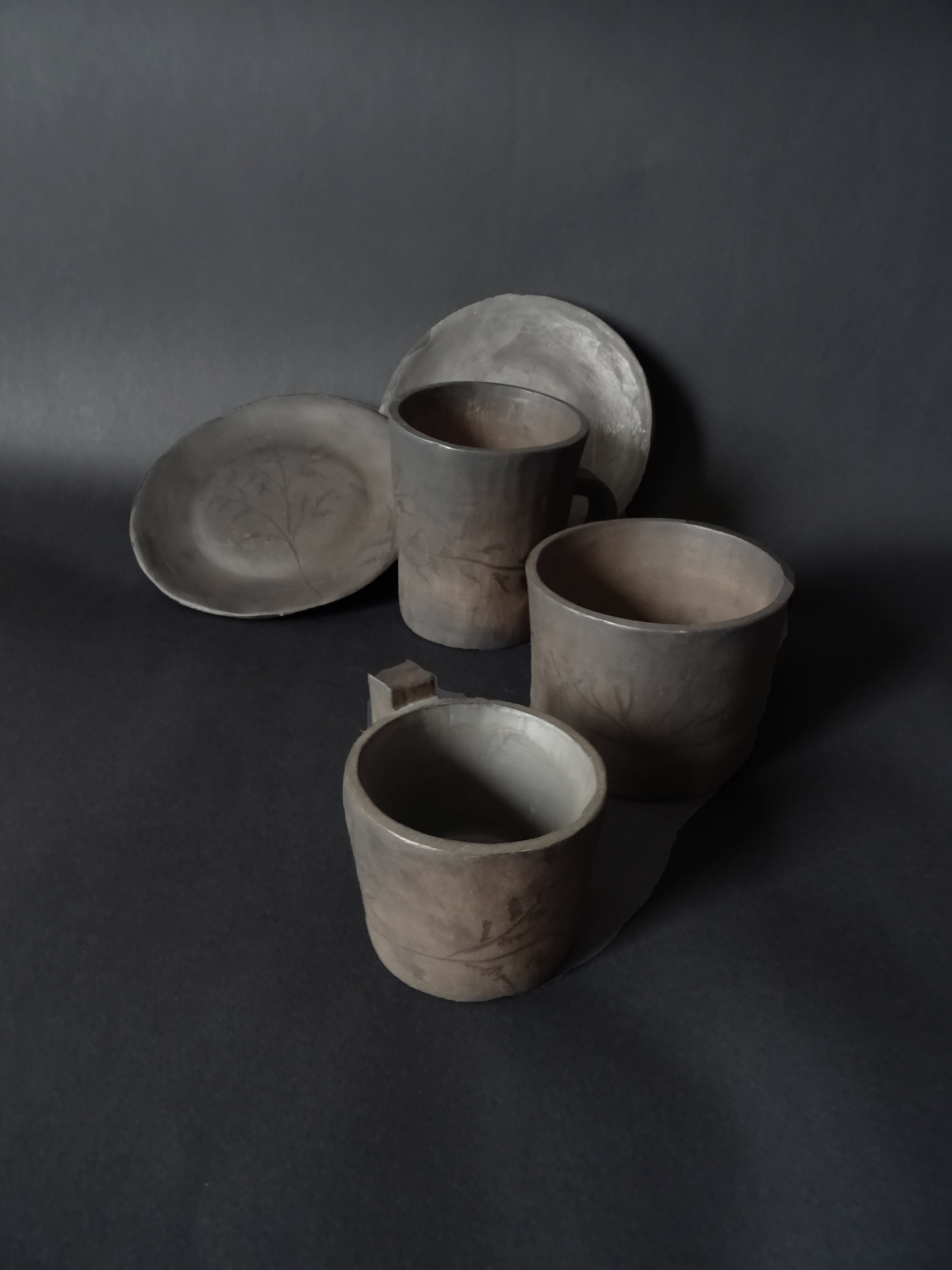 Pro projekt Krásná práce byl vytvořen za technologií zakuřování set šálků na kávu. Prvkem je leštěným dekor inspirovaný lučními rostlinami.