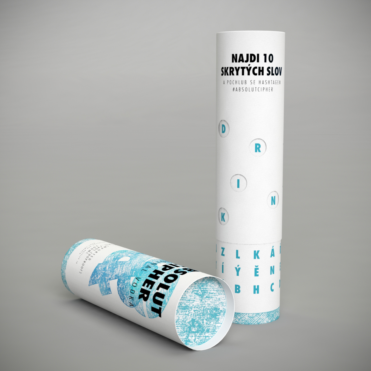 Dárkový obal na vodku. Při otáčení vnějšího válce lze nalézt určité slova spojená s produktem. Cílem je nalézt 10 různých slov.