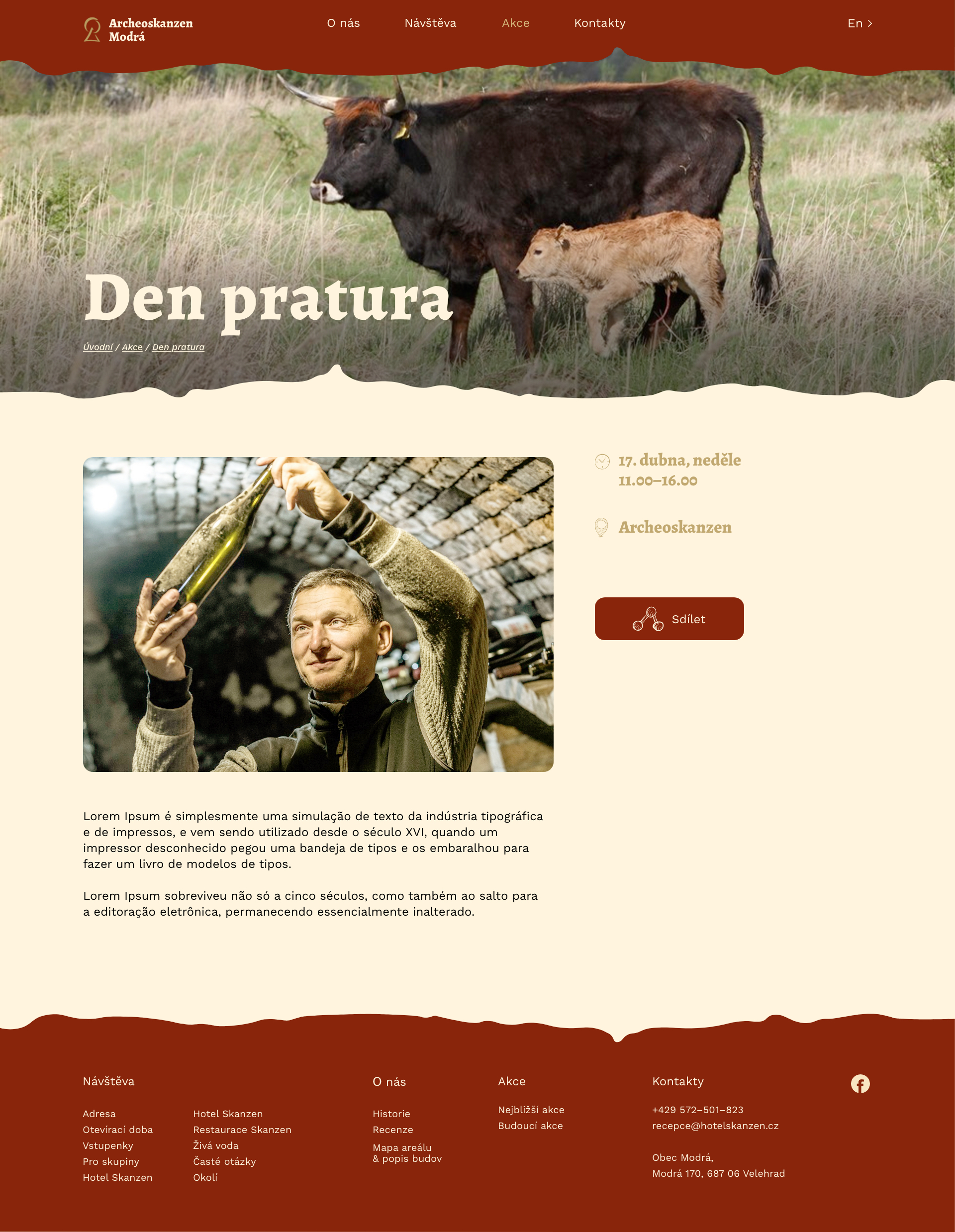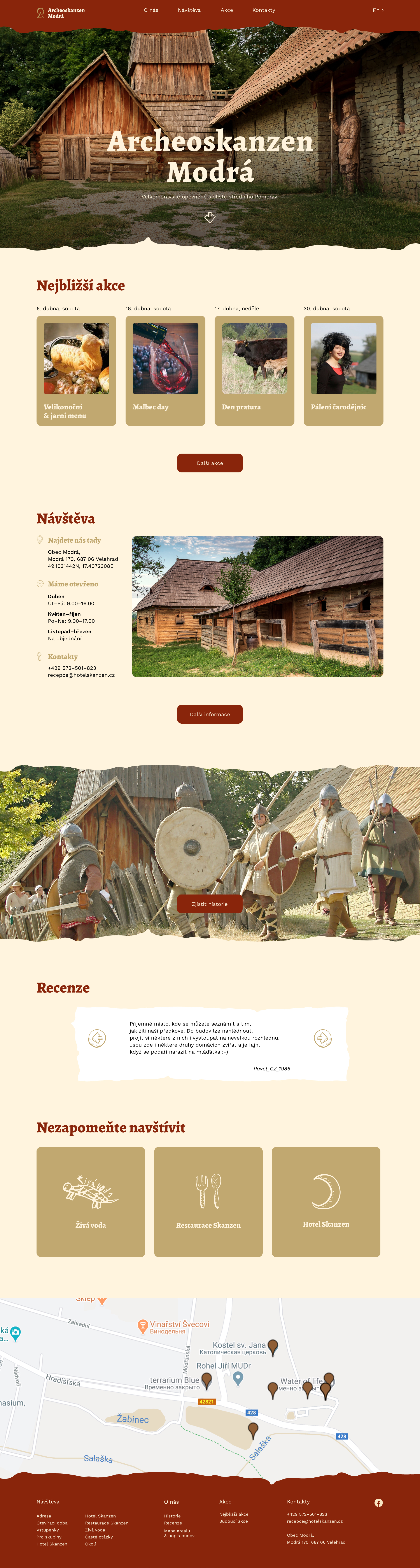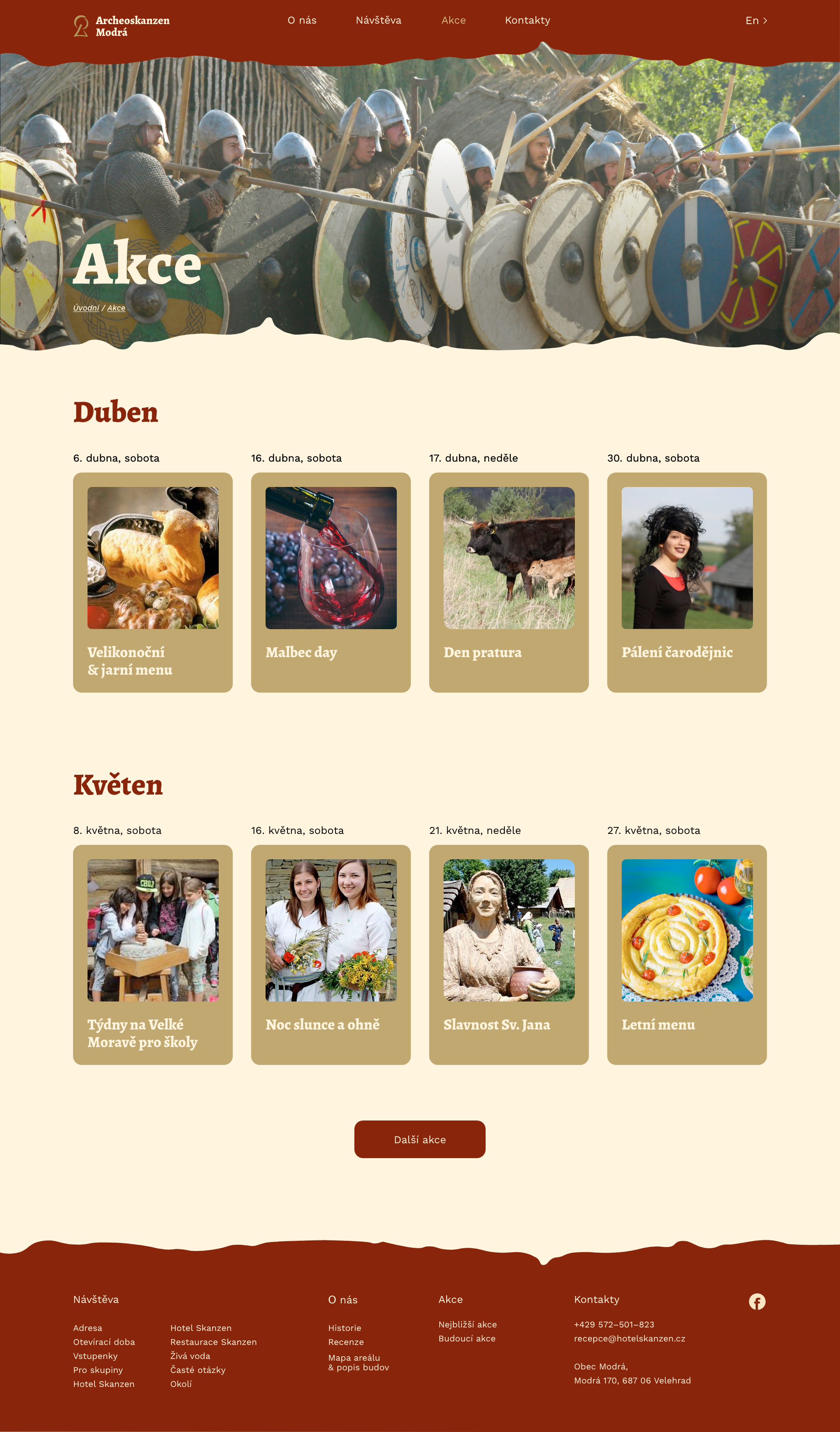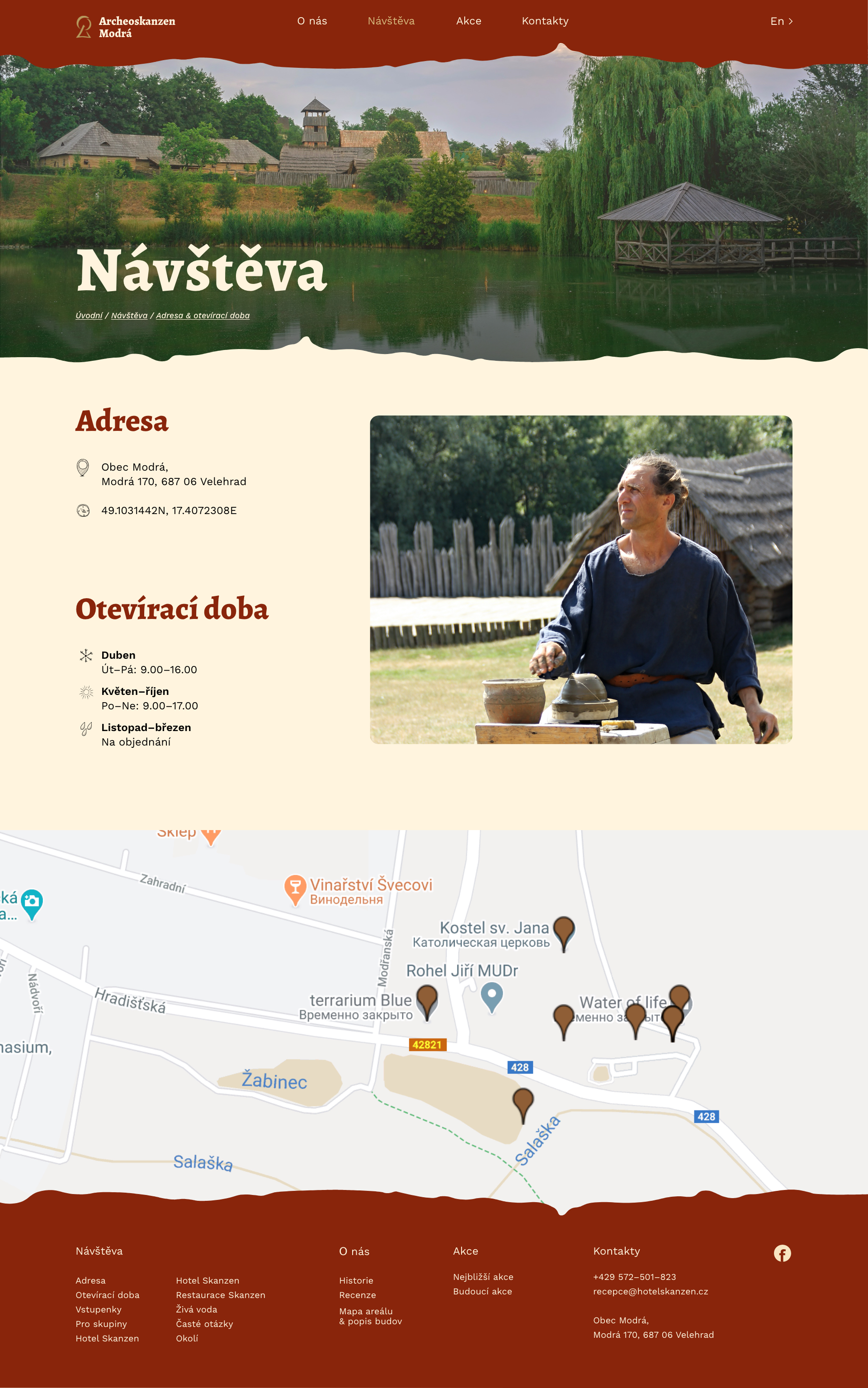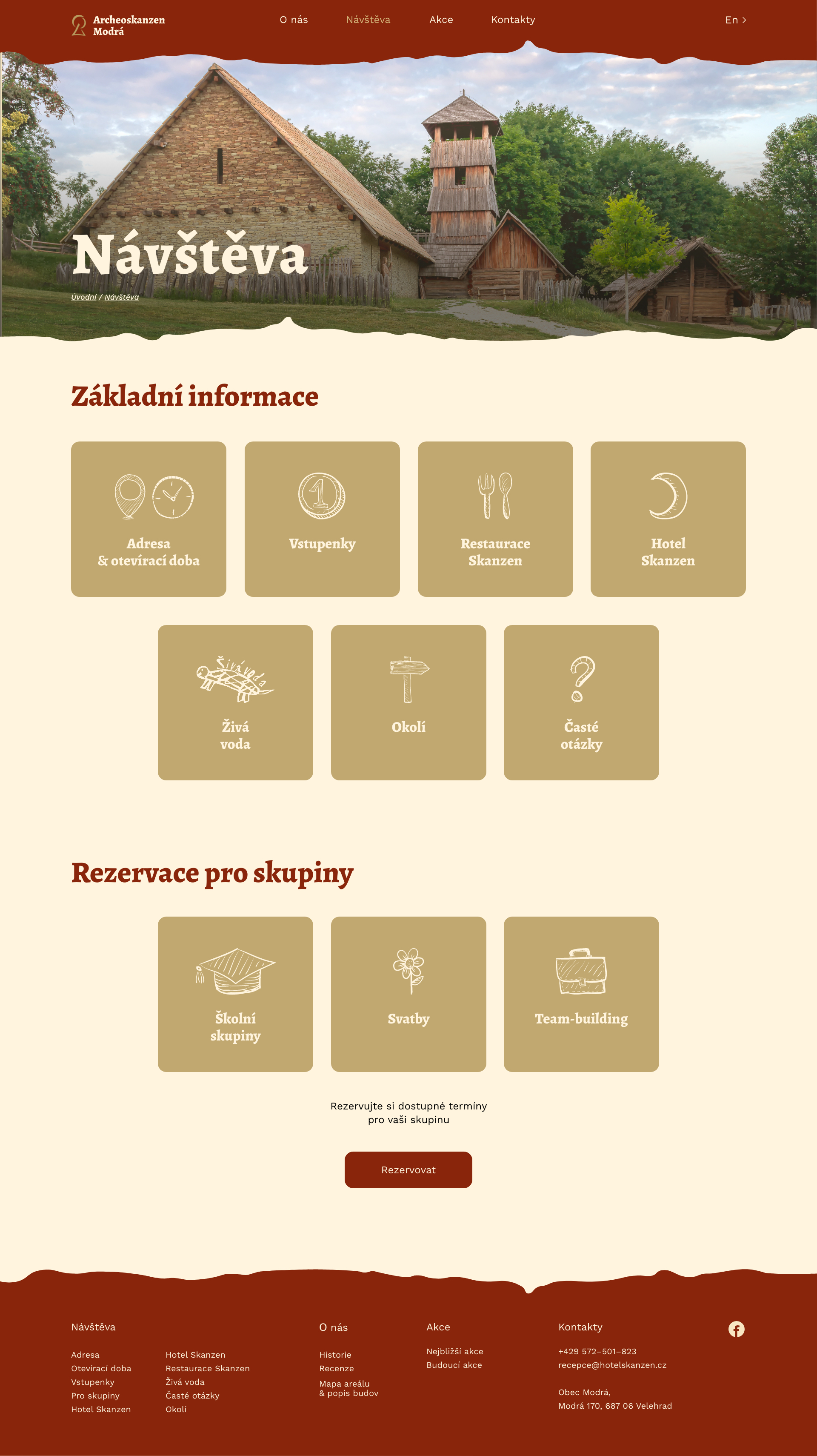 Úkolem bylo udělat redesign webu www.archeoskanzen.cz, který by pomohl návštěvníkovi rychle a pohodlně najít informace z různých zařízení. Snažila jsem se udělat vizuální část práce tak, aby odpovídala skutečnému místu. Ve svém návrhu jsem použila ručně malované ikony a vlnité tvary, které by připomínaly charakter Archeoskanzenu.