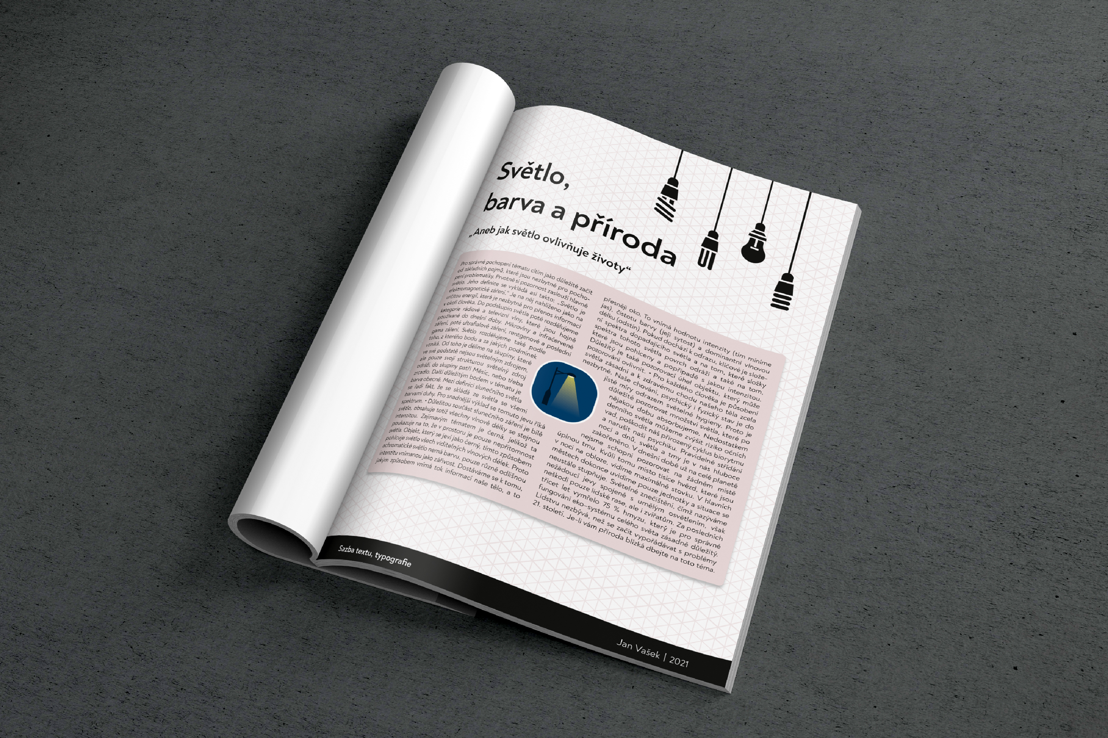 Tvorba sazby na typografii 2 s vlastní vektorovou ilustací na téma světlo