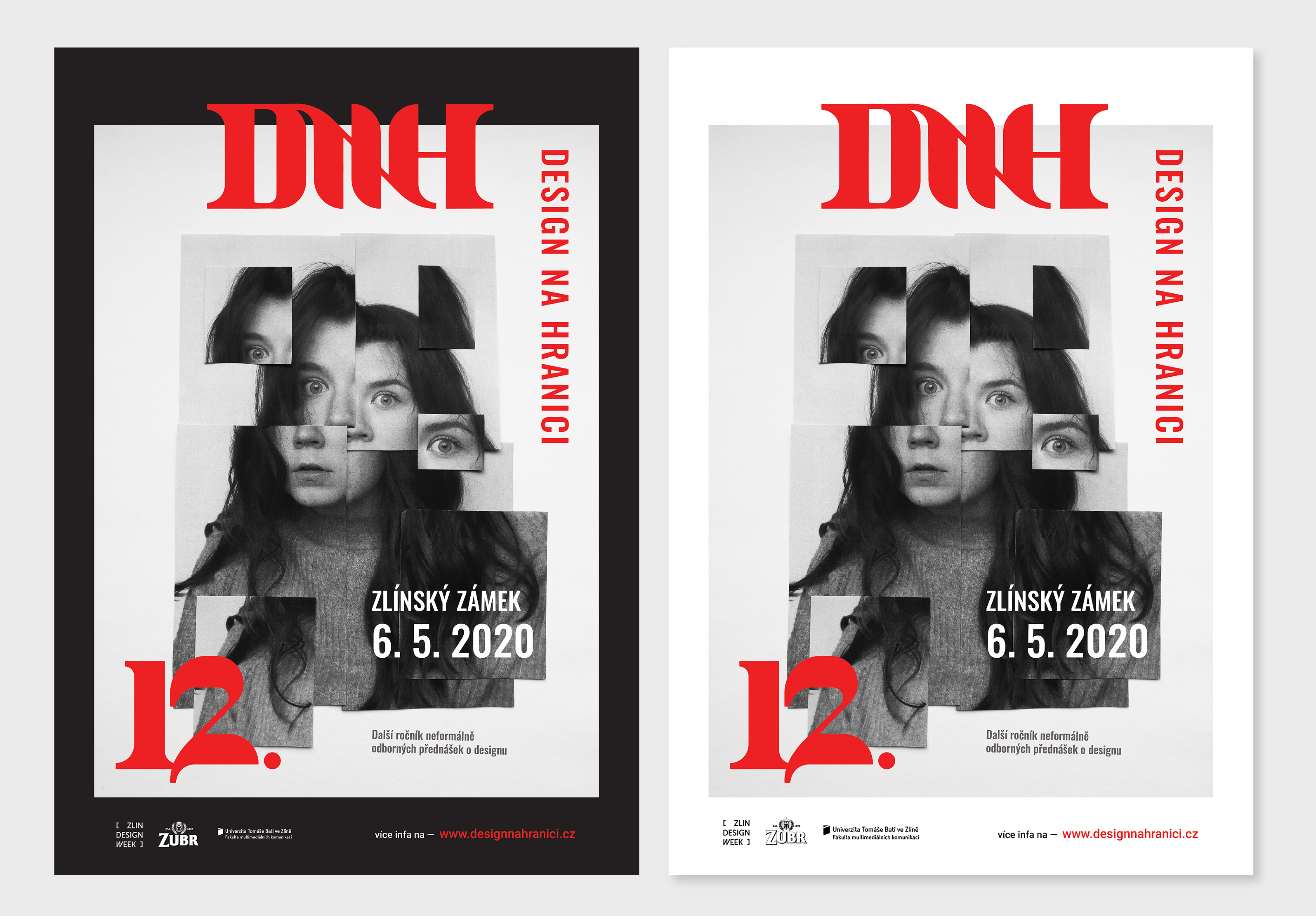 Design na hranici je neformální konference zaměřená na přednášky designerů a 12. ročník se nese ve znamení taste the waste. Rozhodla jsem se celý vizuální styl postavit na samotných přednášejících, bez kterých by žádná konference ani nebyla možná. Z jejich fotek bych vytvořila koláže (nyní můj vlastní obličej sloužící pro ukázku), na kterých by je nebylo možné poznat, ale postupem času by se odhalovali široké veřejnosti. Koláže jsou vytvořené pomocí papíru, abych navodila dané téma taste the waste.