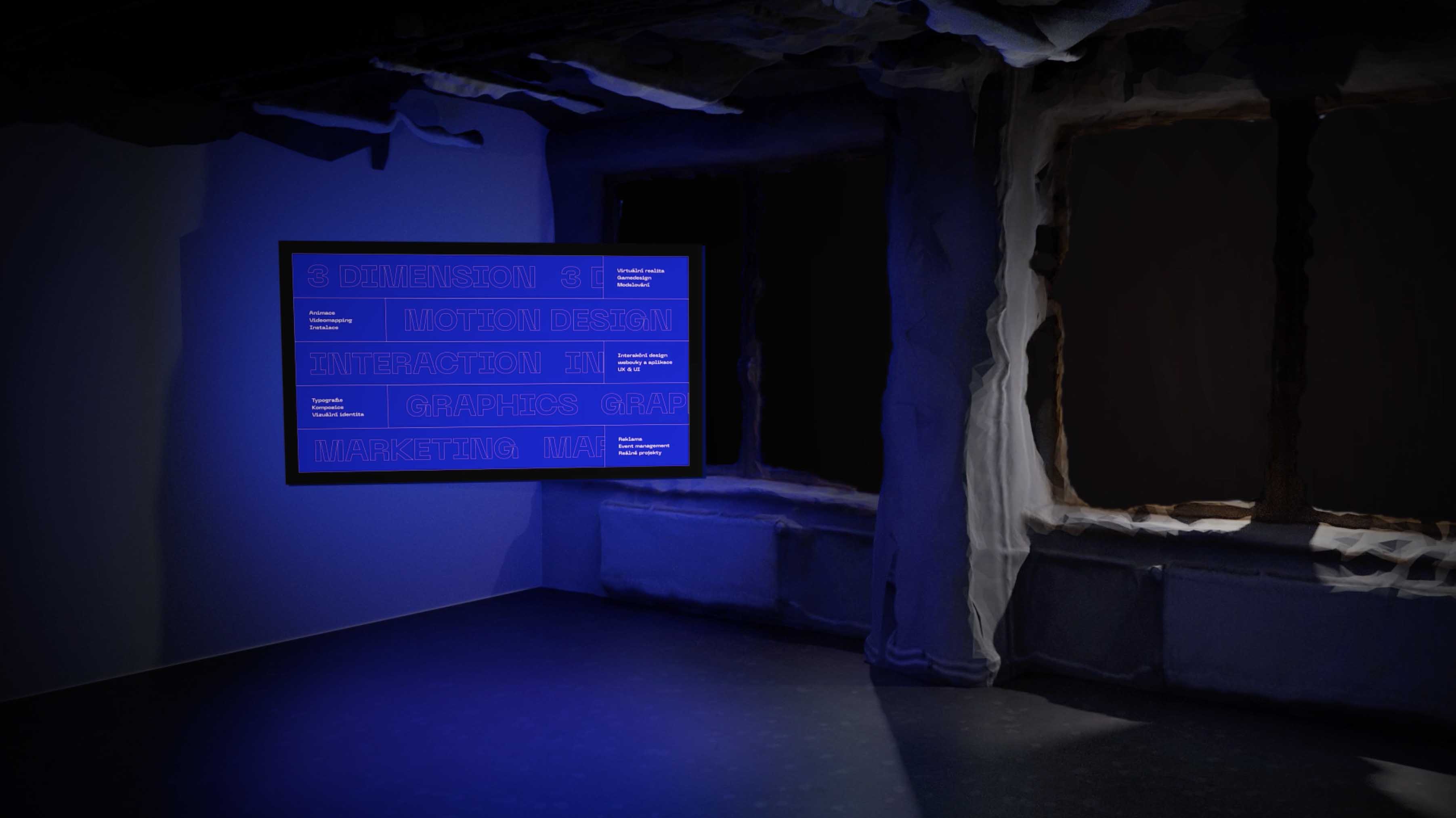 Ateliér digitální design ve virtuální realitě. Na základě přibližně 200 fotek jsme pomocí fotogrametrie vytvořili 3D model místnosti. Následně jsme navrhli hotspoty, které nastiňují čím se ateliér zabývá, co se zde vyučuje a jak vypadá život digitálních designerů na UTB. Například skrze virtuální okna je možné nasát atmosféru erasmů a ateliérových akcí v zahraničí. Na TV je možné shlédnout krátká videa, která ukazují zaměření ateliéru. Interaktivní stěna s plakáty je výběrem nejlepších studentských prací.