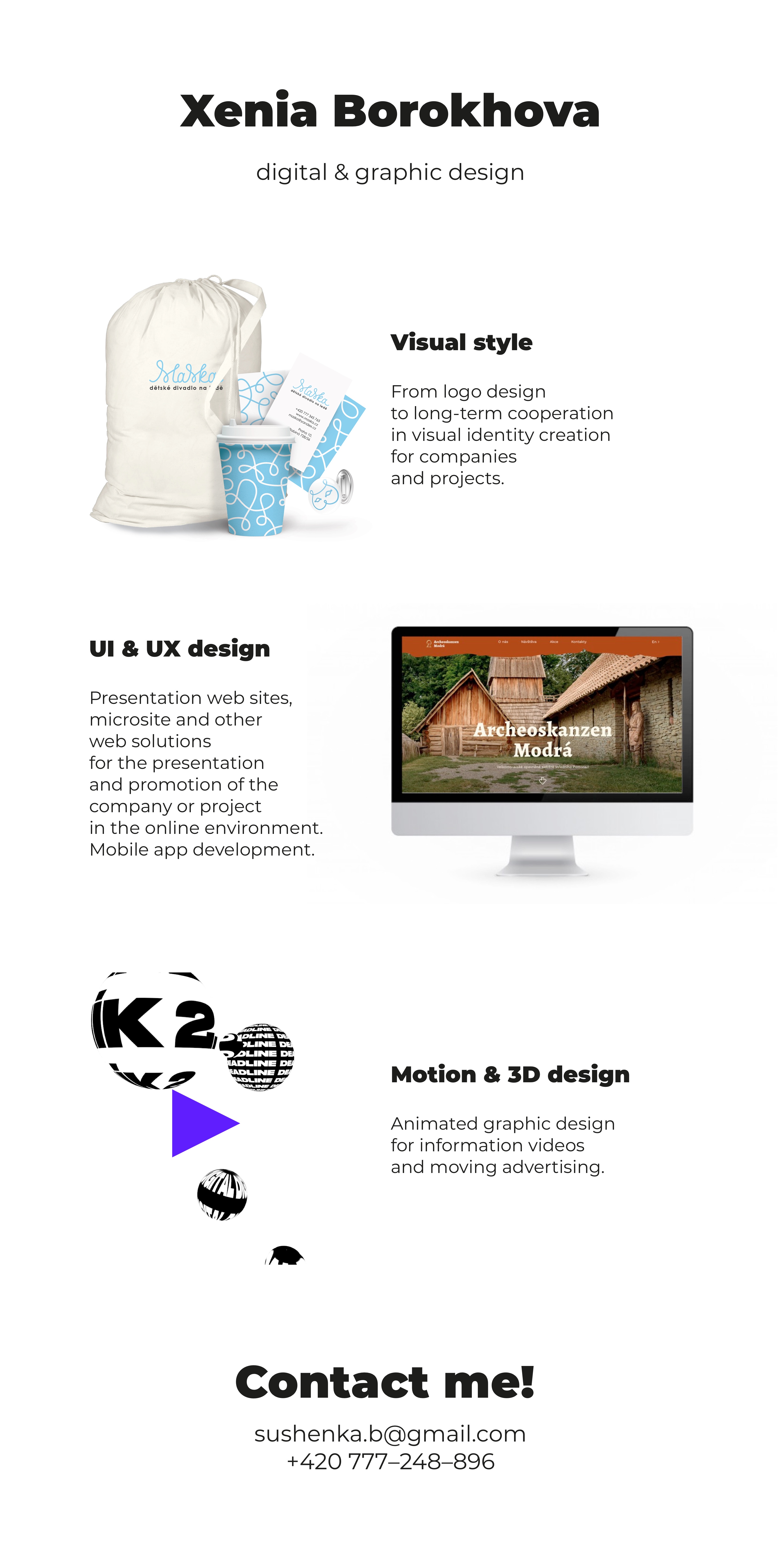 Udělala jsem jednoduché a čisté uspořádání svého portfolia, které stručně informuje mého klienta o poskytovaných službách.