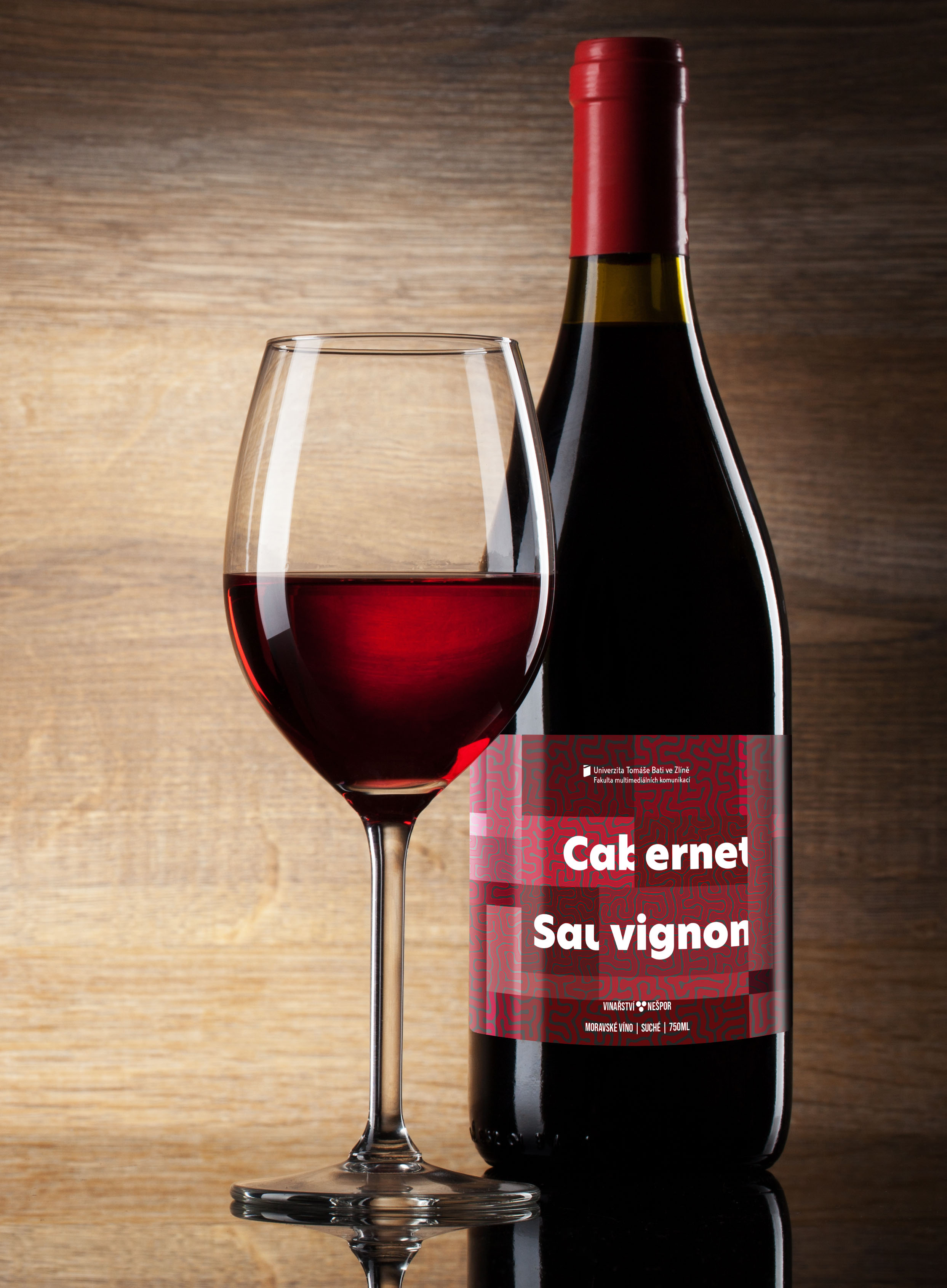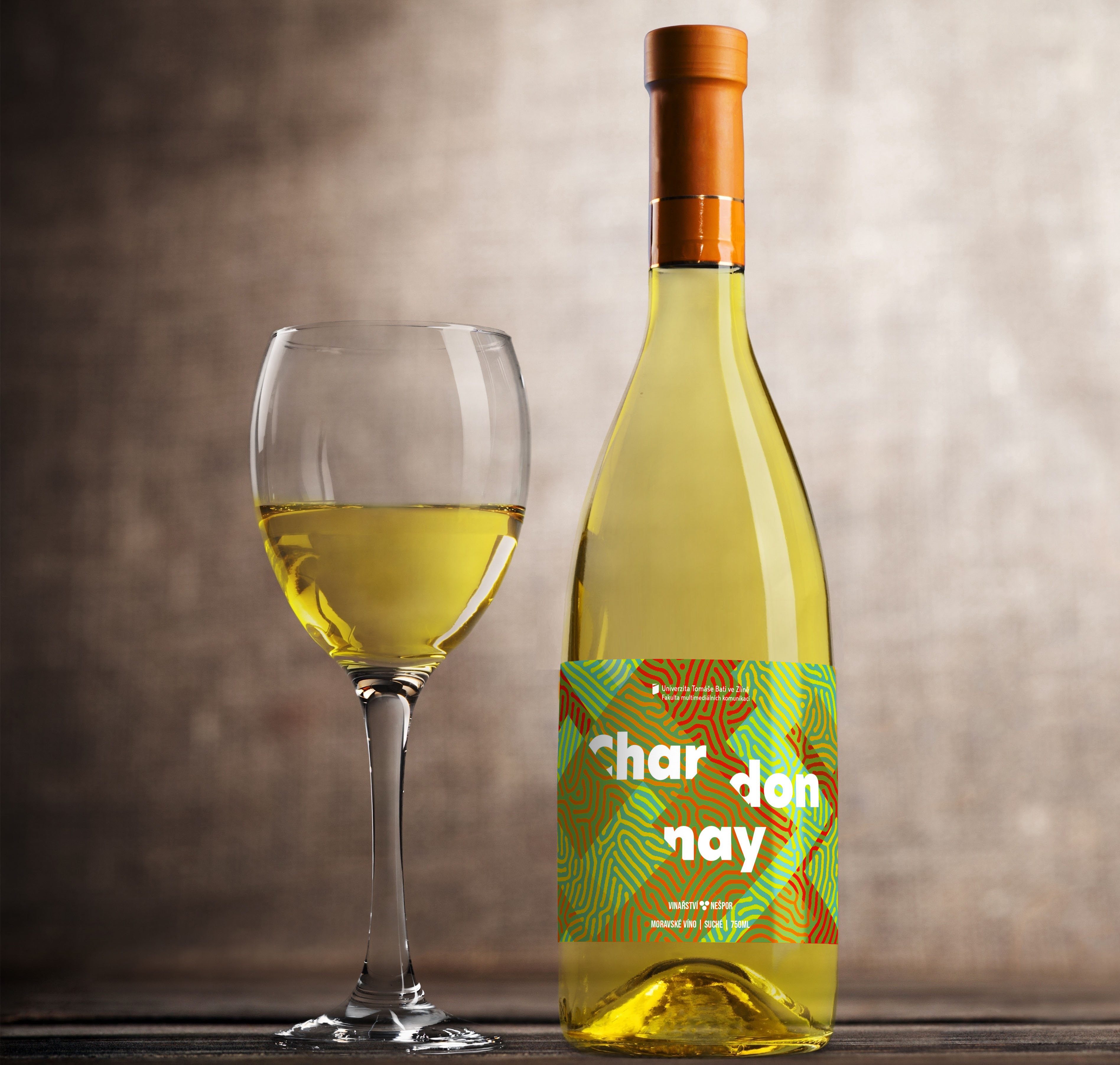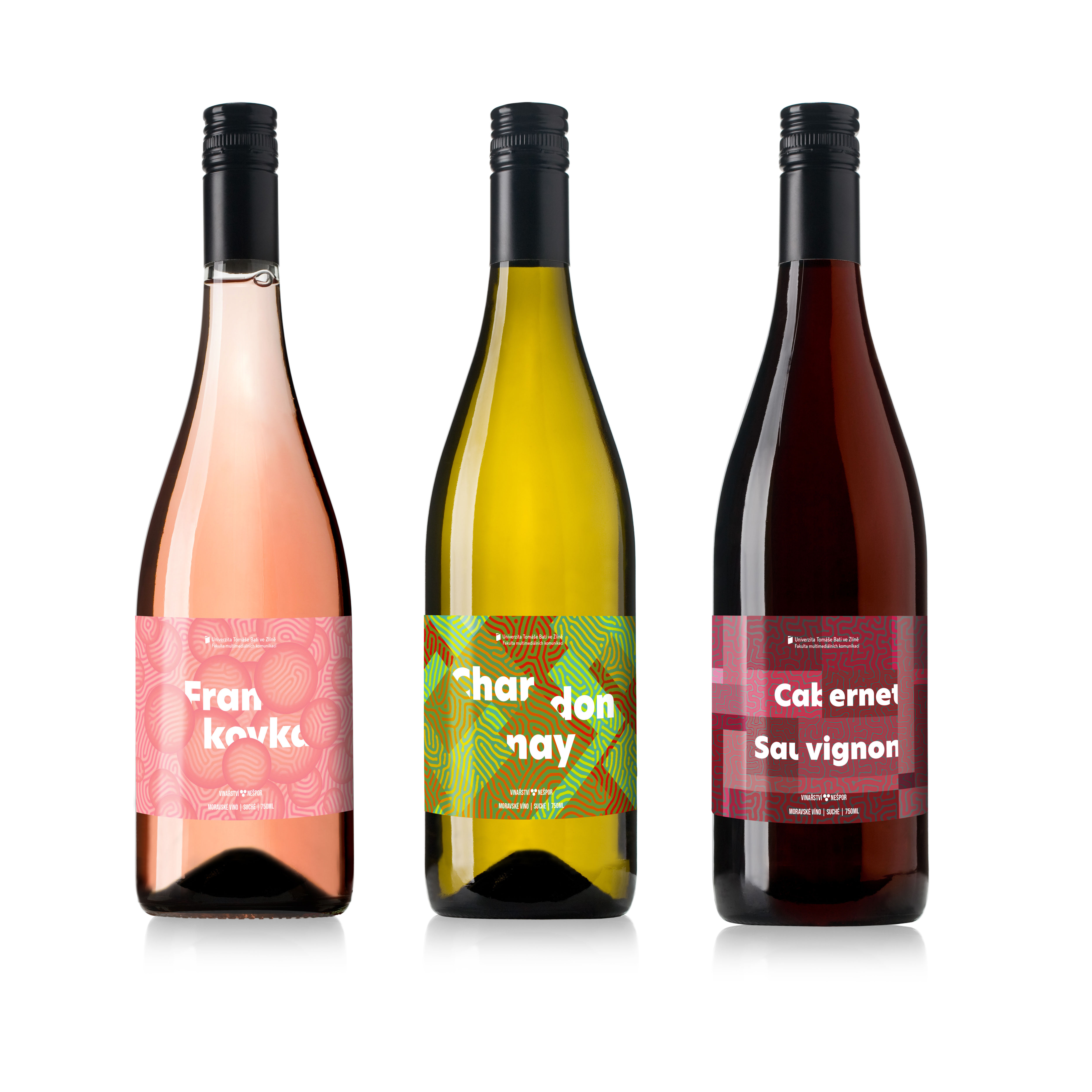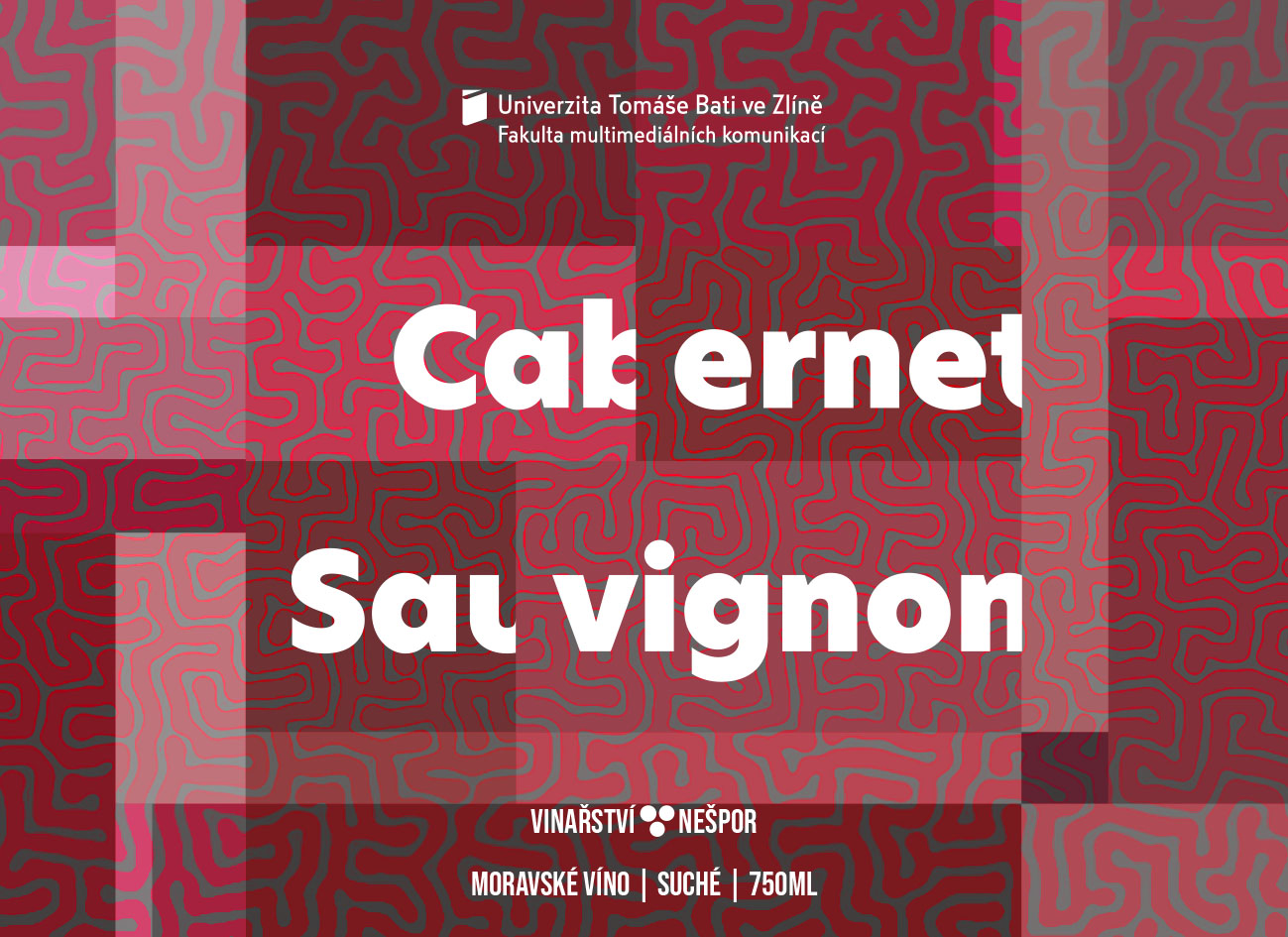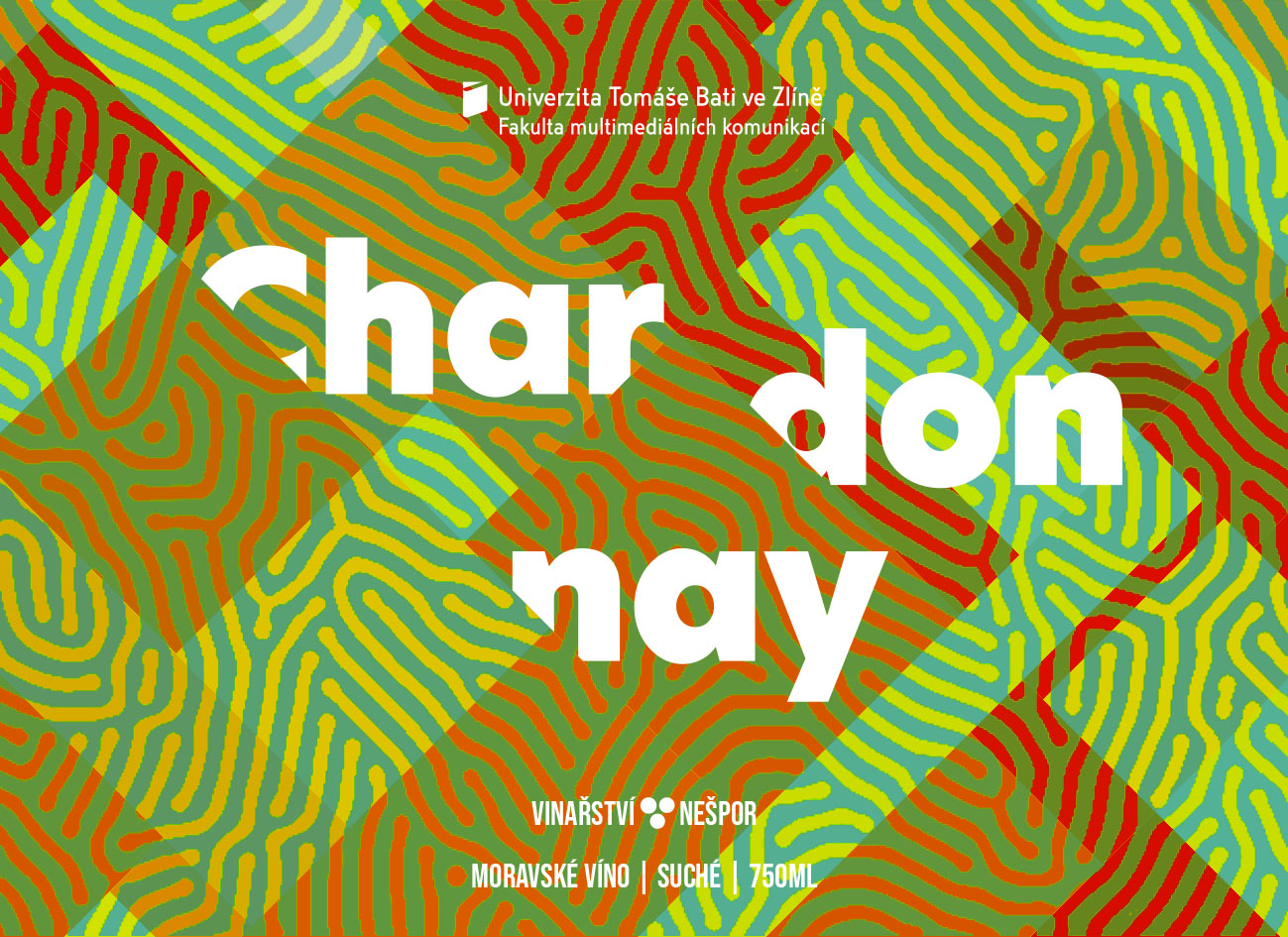 Návrh etikety na víno pro Univerzitu. Při navrhování jsem vycházel z kombinace geometrických tvarů a kresleného bludiště. Pestré barvičky, tučný grotesk a logo UTB, no nekup to!