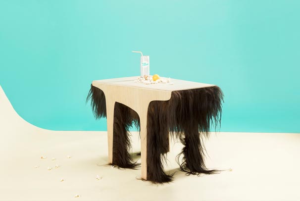Lehký funkční stolek který lze převrátit naruby a používat jej jak dřevěný tak plstěný a v rozloženém stavu jej lze využít jako podložku na zem.