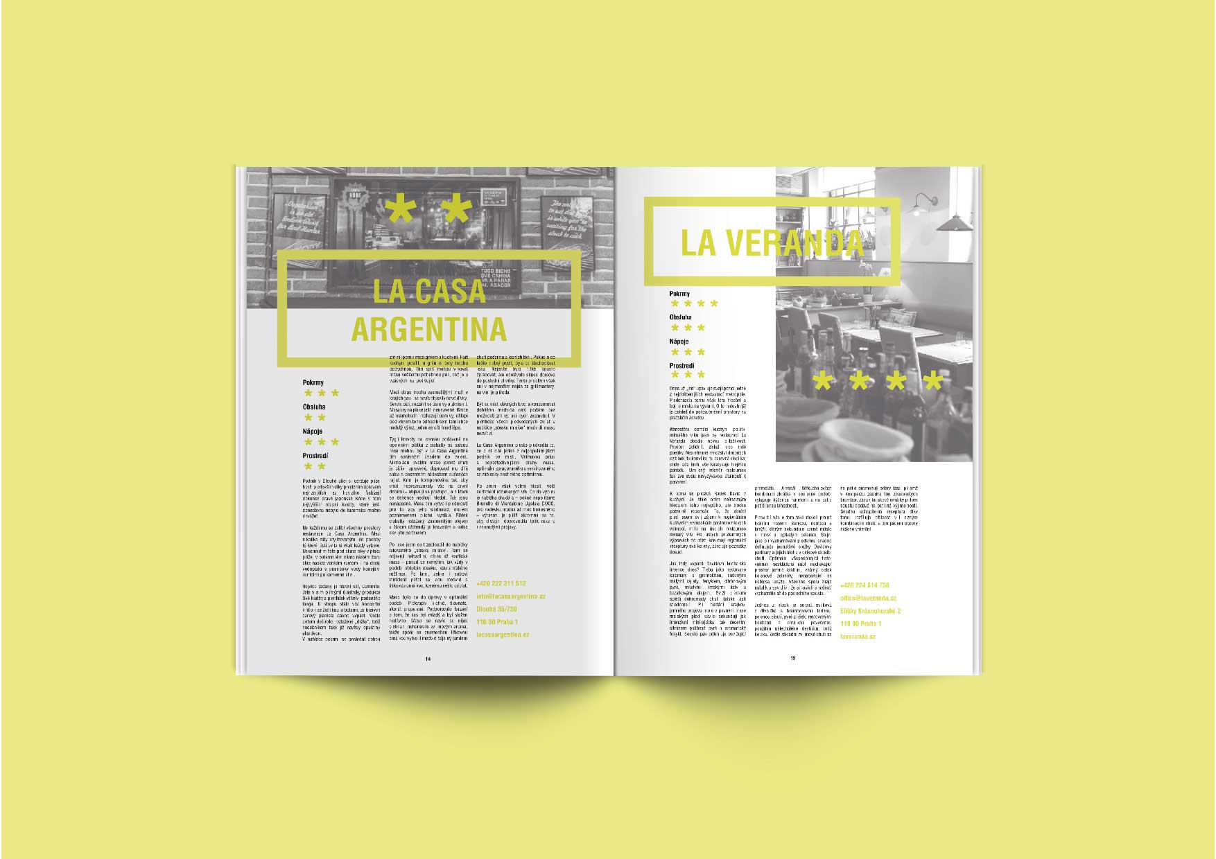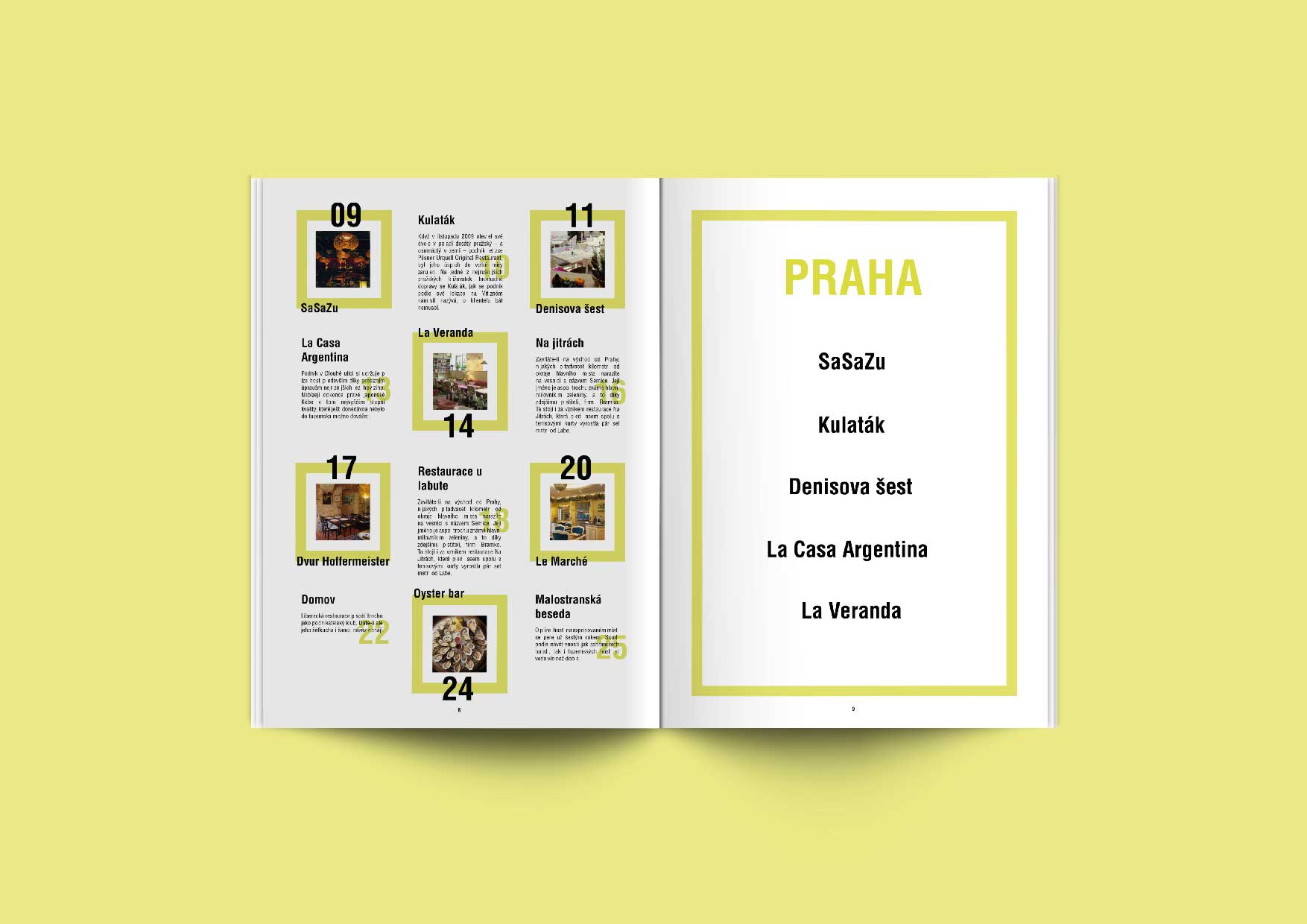 Layout for magazine about best rated restaurants in the Czech Republic.