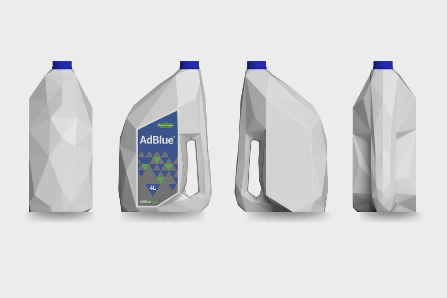 Návrh vizuálně jedinečného kanystru na aditivum AdBlue využívající asymetrii a jakoby krystalickou strukturu. Díky použití tohoto prvku se nádoba nehroutí, a to i při jejím objemu 4L. Protože manipulace s tímto objemem nemusí být jednoduchá, madlo je umístěné pod těžištěm, a tak při překlopení se nádoba drží mnohem jednodušeji a je stabilnější. Možnost polepit etiketou obě strany nabízí možnosti propagace pro prodejce.