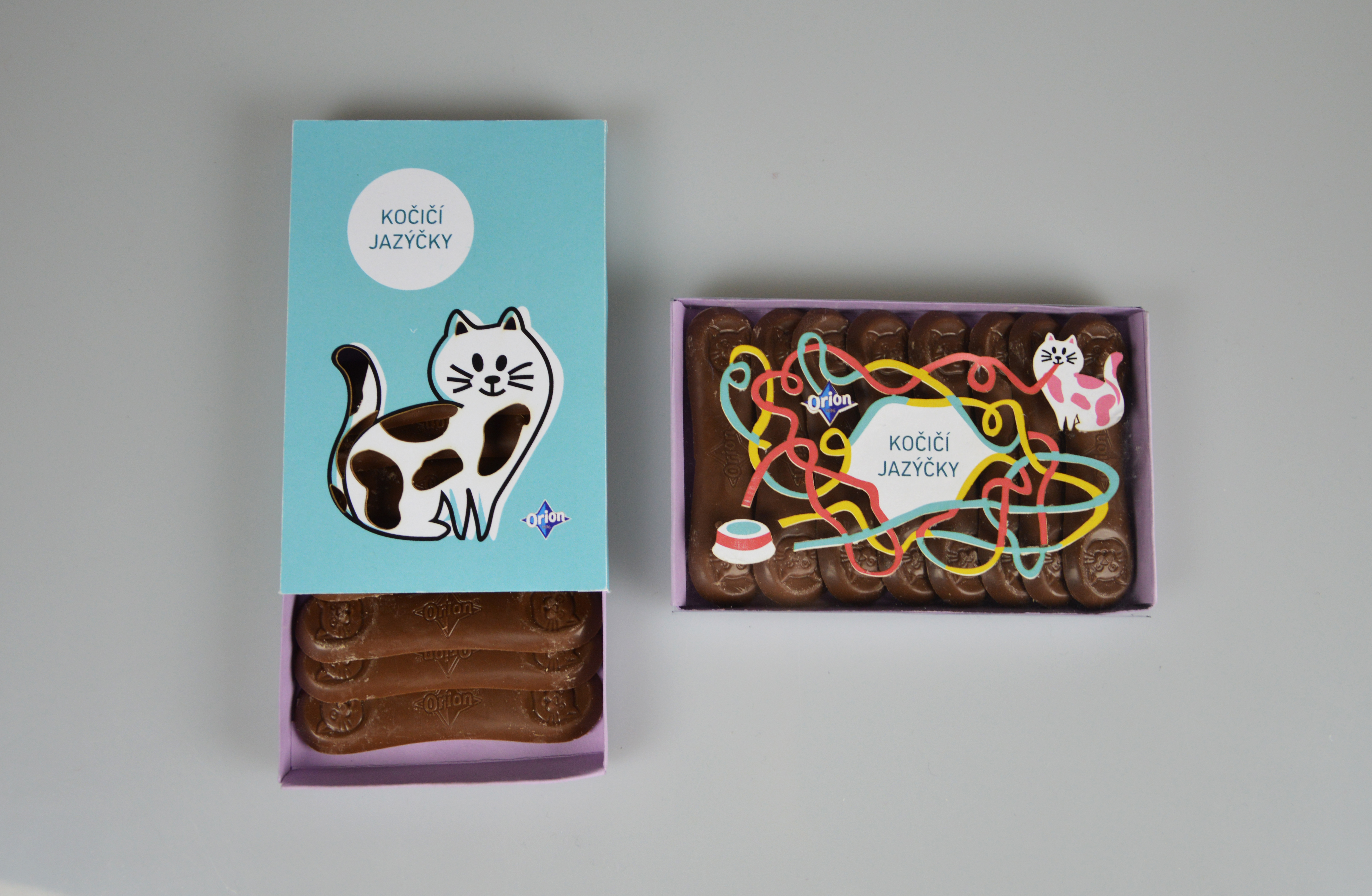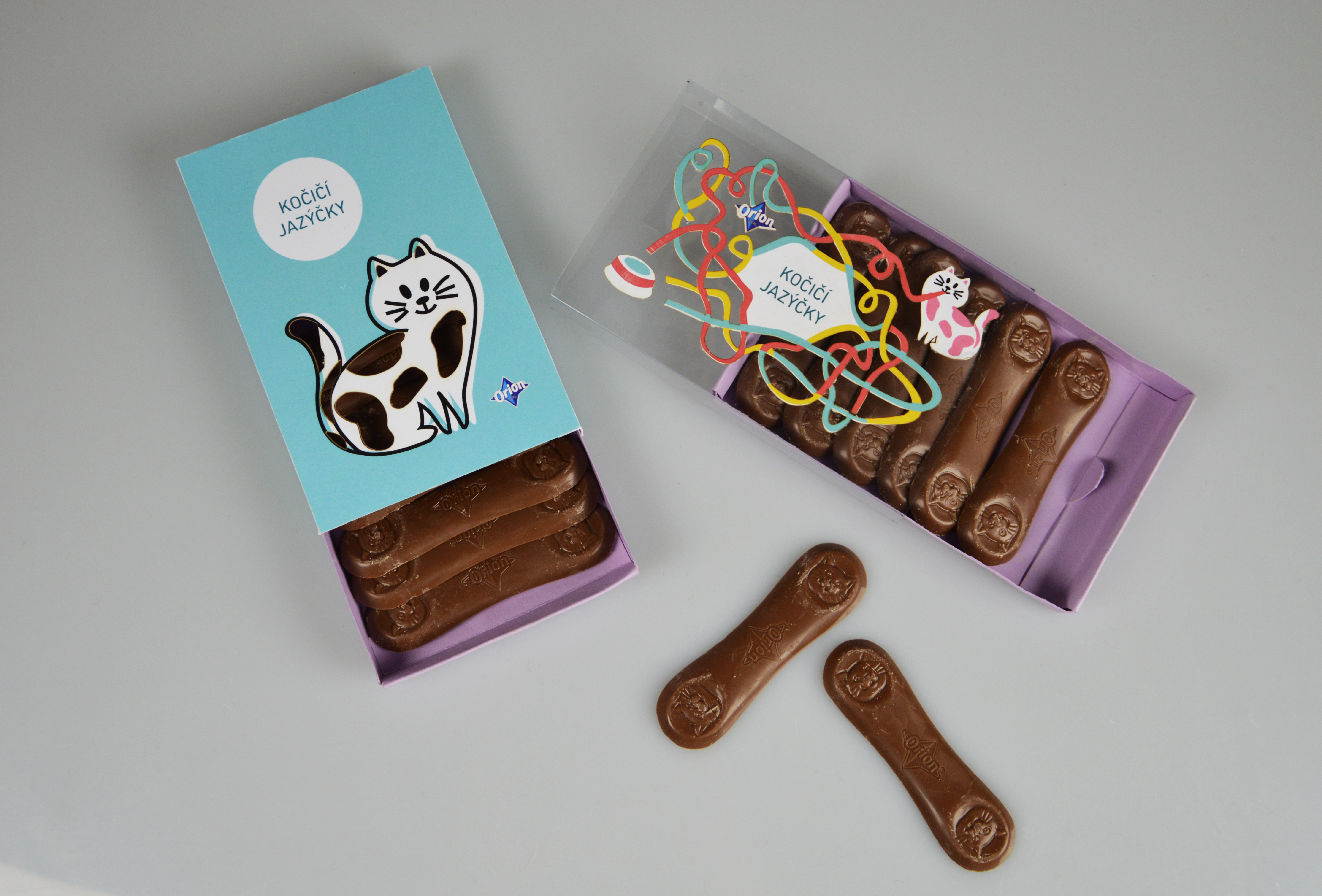 Redizajn obalu pre Kočičí jazýčky v dvoch variantách, pre deti a pre dospelých.