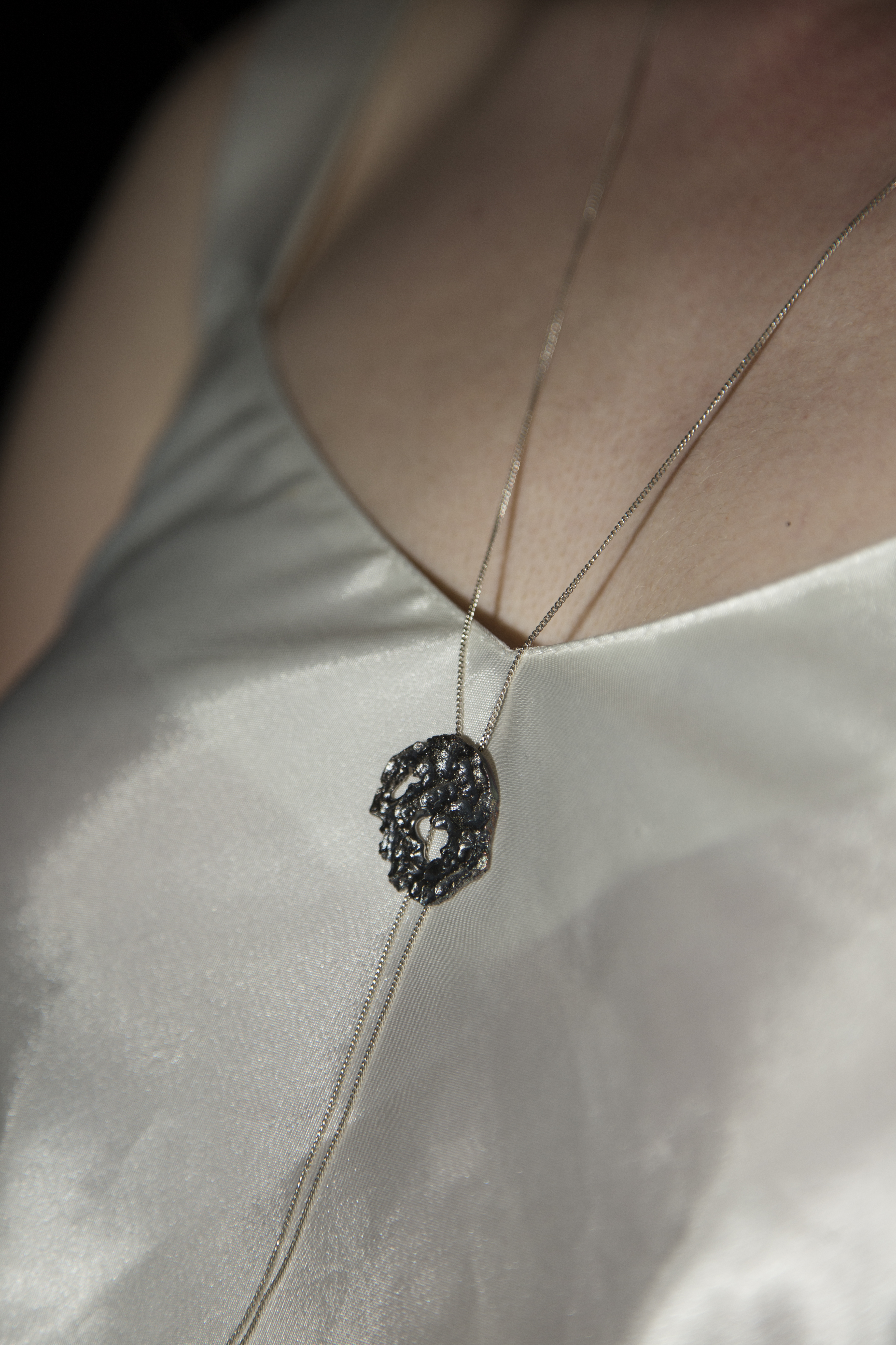 Vytvorila som kolekciu šperkov, ktorá odhaľuje krásu v škaredom. Deštrukciou a deformáciu materiálu vznikli neopakovateľné a jedinečné tvary. Vzniknuté chyby a nedokonalosti pri výrobnom procese som využila ako základné prvky pri tvorbe originálneho dizajnu. Šperky sú výraznejších tvarov, no spĺňajú základné podmienky nositeľnosti. Jednotnosť materiálu a základné farby sa hodia ku každému odevu či príležitosti a zároveň vyniká samotná krása kovu.