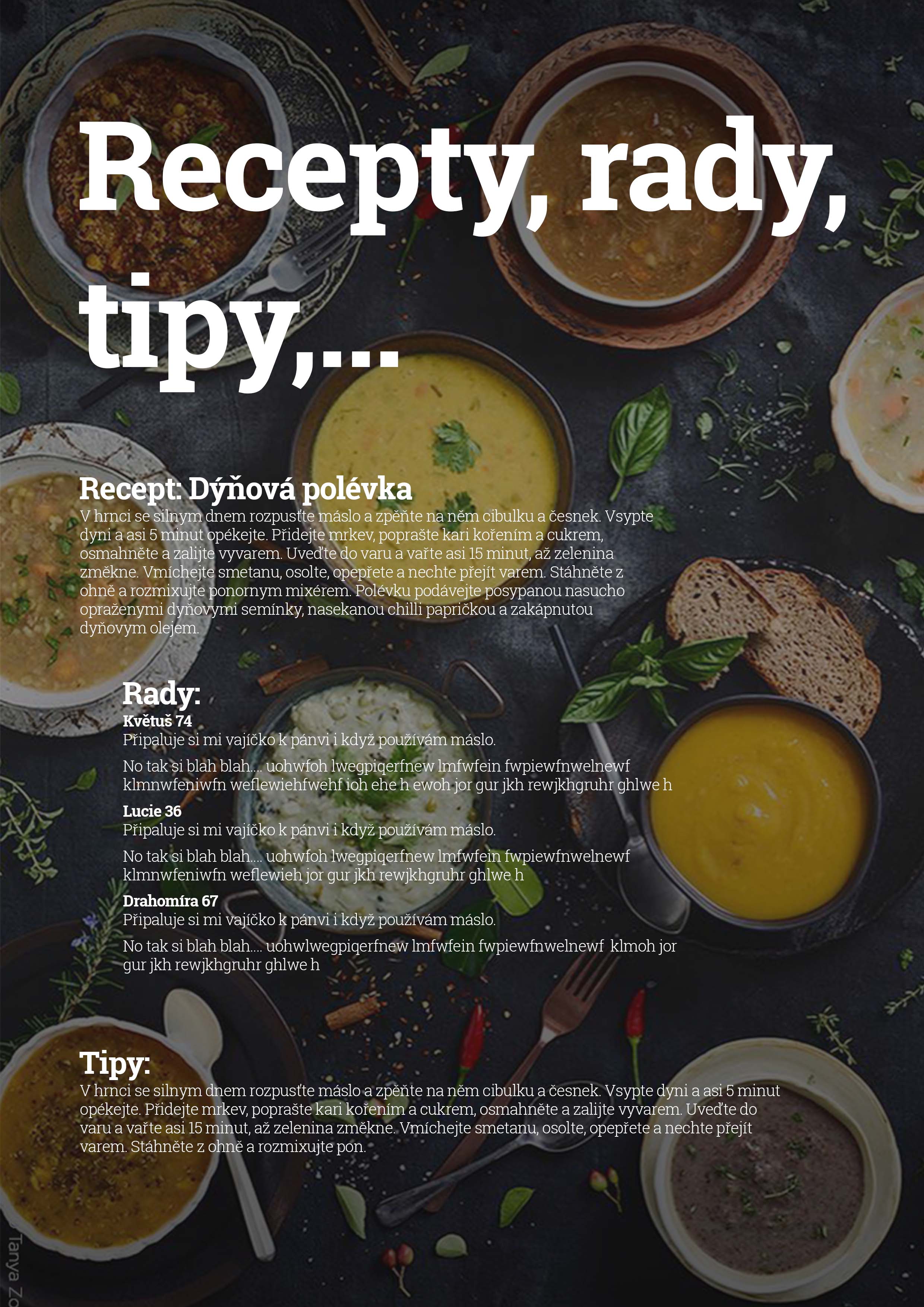 Leták se mění podle tématu daného týdne (měsíce/sezónní akce). Uvnitř je přidána dvojstránka, která má zabránit tomu, aby lidé leták hned vyhodili.