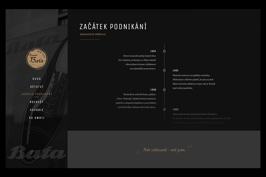 Microsite o československém podnikateli a krále obuvi Tomáši Baťovi.