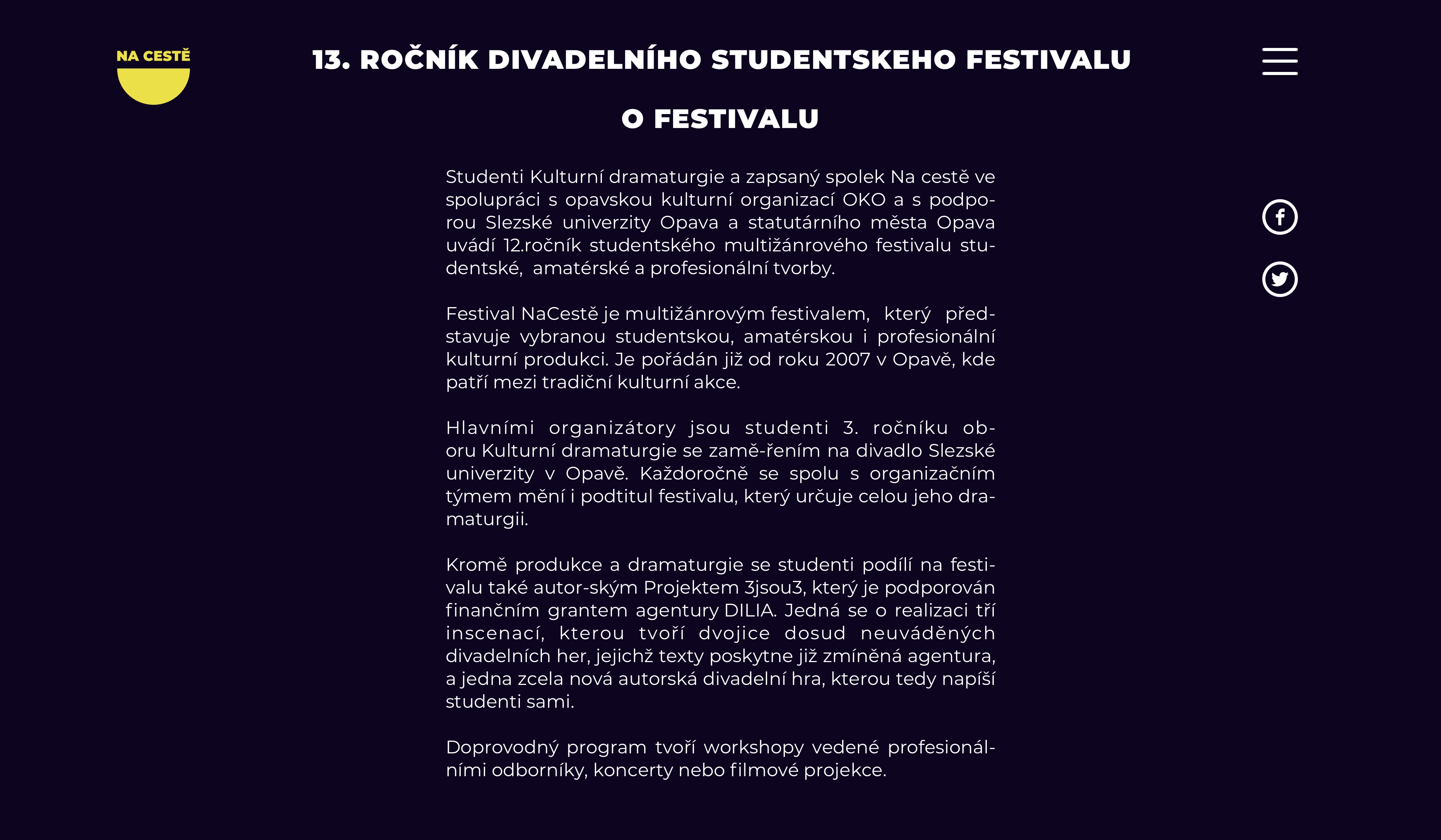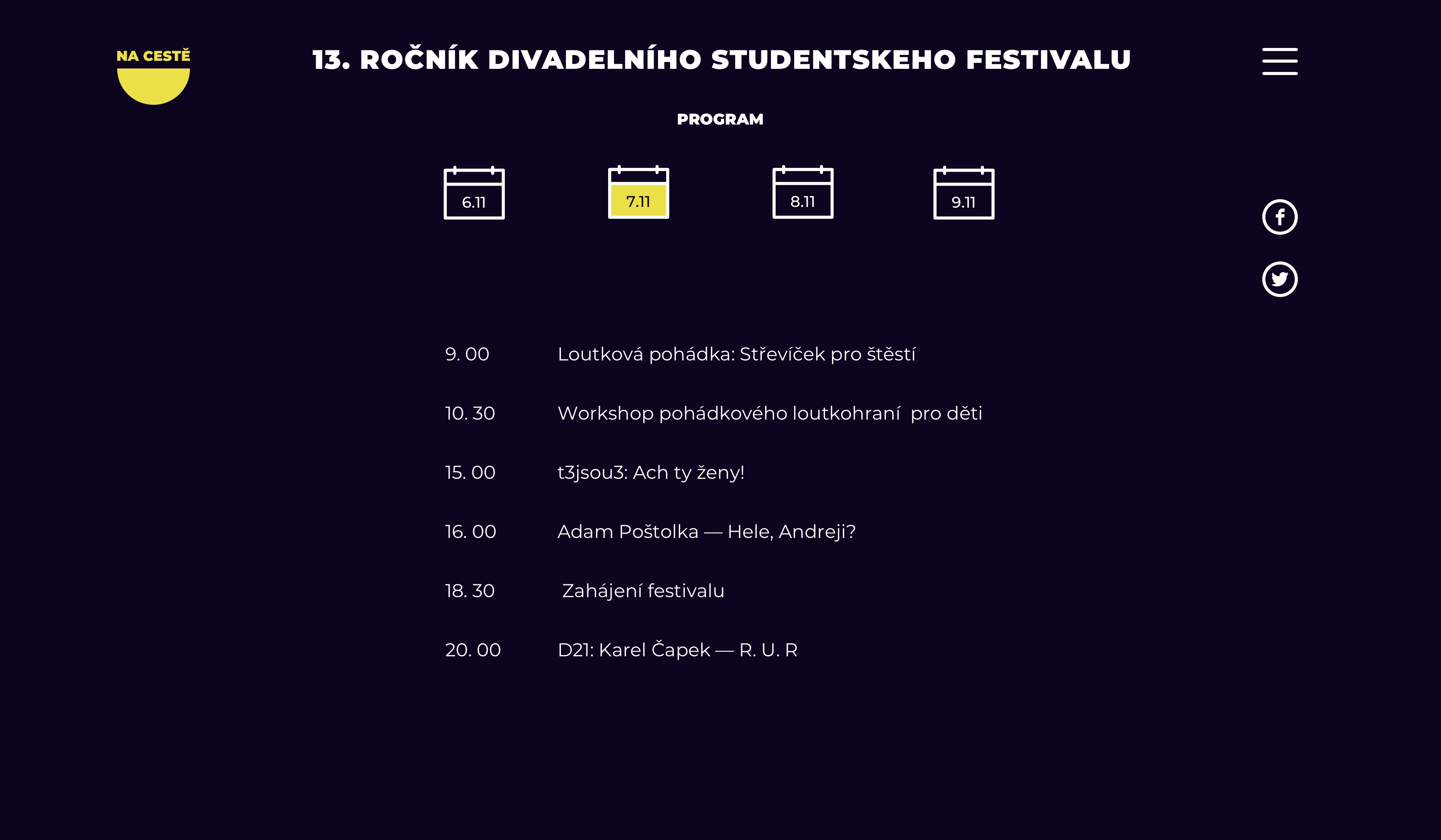 Úkolem bylo vytvořit vizuální styl a webovou stránku multižánrového studentského festivalu „Na cestě“.