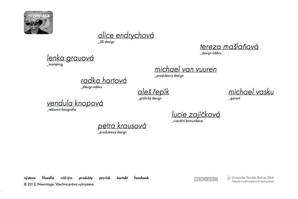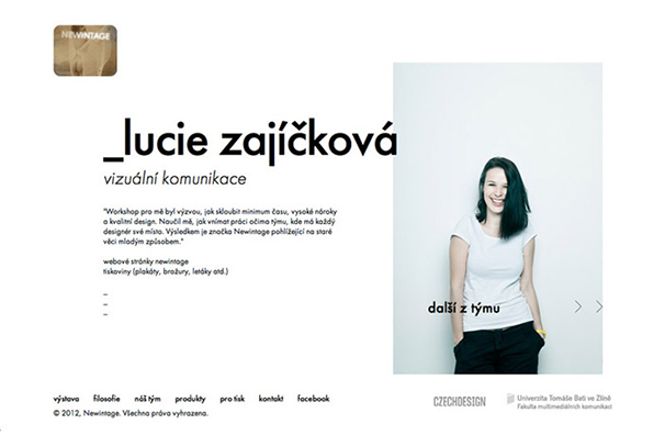 Webové stránky a propagační tiskoviny pro novou lifestylovou značku Newintage. Ta byla vytvořena v rámci workshopu pořádaném Univerzitou Tomáše Bati ve spolupráci s neziskovou organizací Czechdesign v květnu 2012.