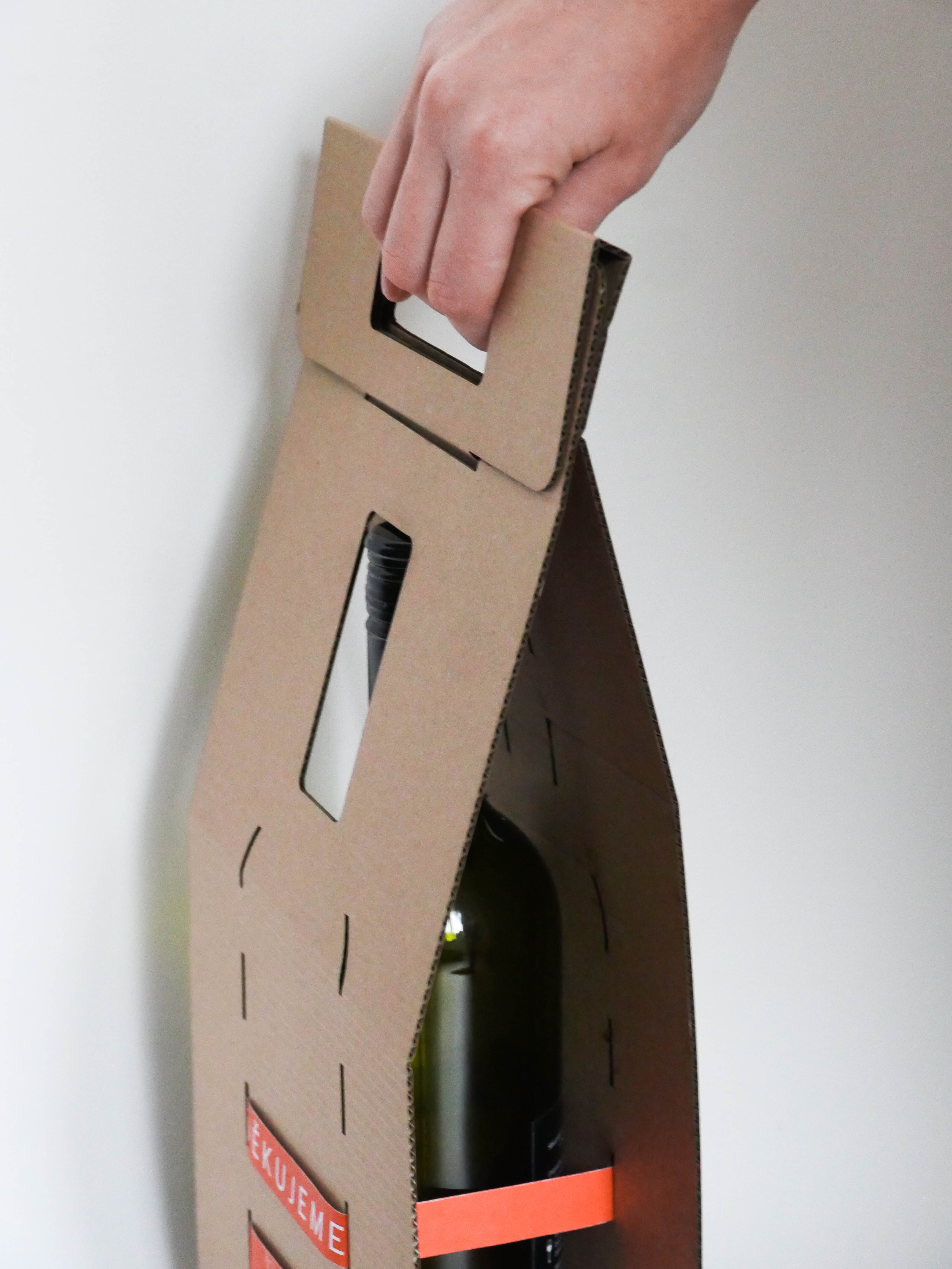 Obal sa nemusí lepiť a je tvorený len z jedného kusu. Na obale sa nachádzajú výrezy v tvare fľaše, cez ktoré sa dajú prevliecť pásky s tématikou pri ktorej je fľaša darovaná, napríklad poďakovanie, k výročiu školy alebo za zásluhy.... Poprípadne komu bude venovaná. Pásky takisto slúžia na uchytenie fľaše v obale.Taktiež stabilitu zaisťuje hrdlo ktoré prenikne cez prierez obalu.