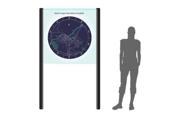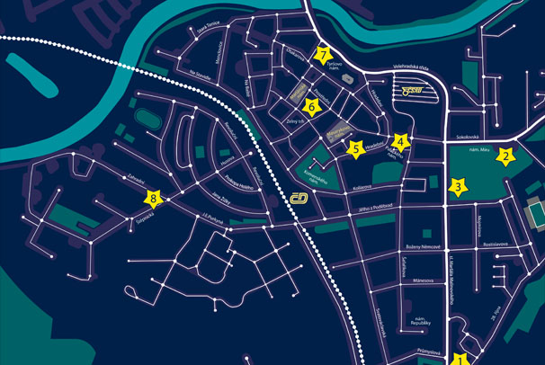Orientační plán zaměřený na noční podniky v Uherském Hradišti, který funguje hlavně v noci.