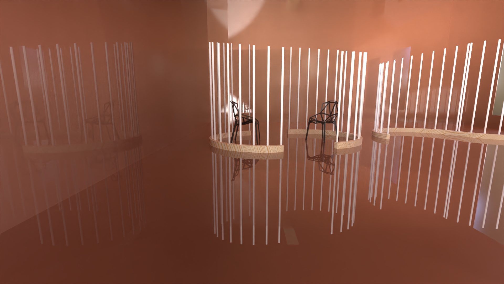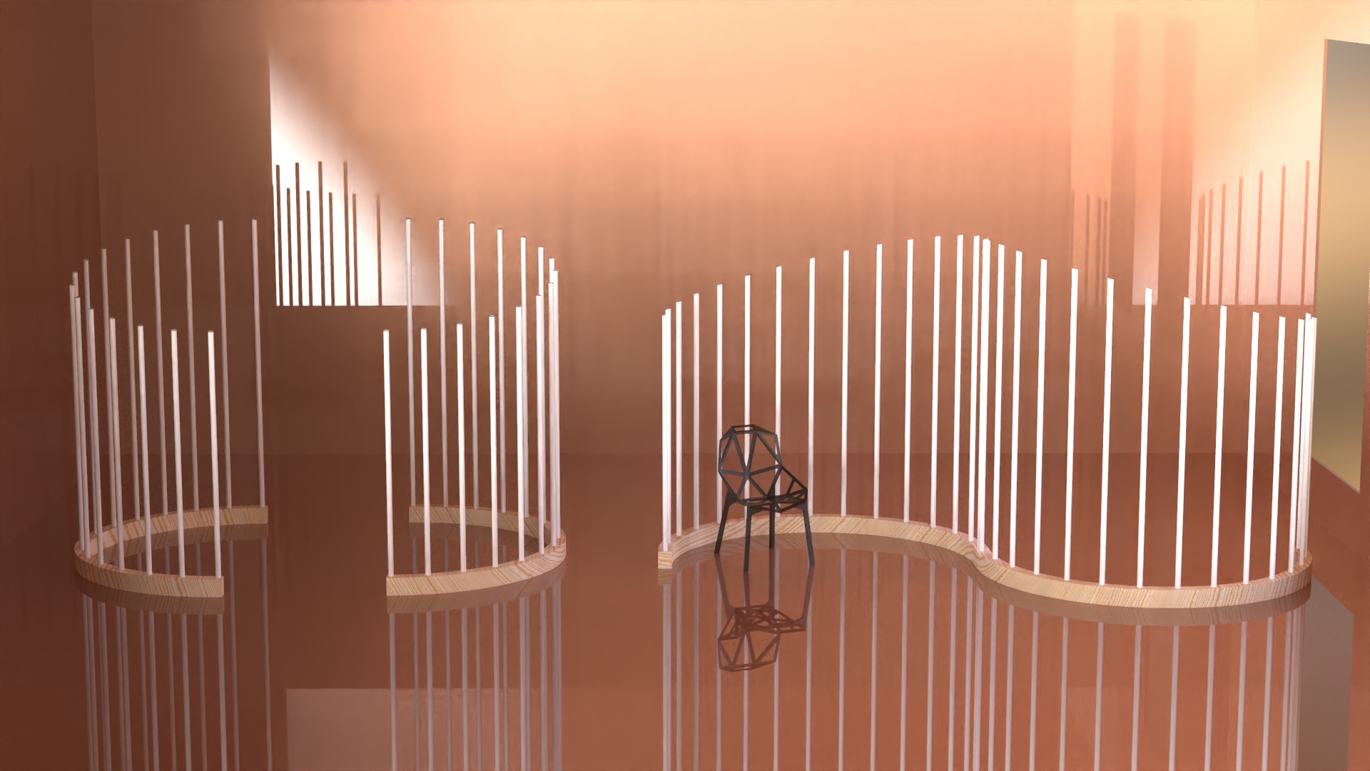 Zvolila som atypický tvar oblúka, kvôli stabilite, ktorú zaisťuje. Oblé tvary sú pre človeka príjemnejšie a vďaka jeho ohybom napomáhajú prirodzene vytvoriť súkromný priestor, v ktorom sa budeme cítiť prirodzene. Paravan je určený predovšetkým do kaviarní, poprípadne do chillzón. Človek si ho môže môže vyskladať podľa potrieb.