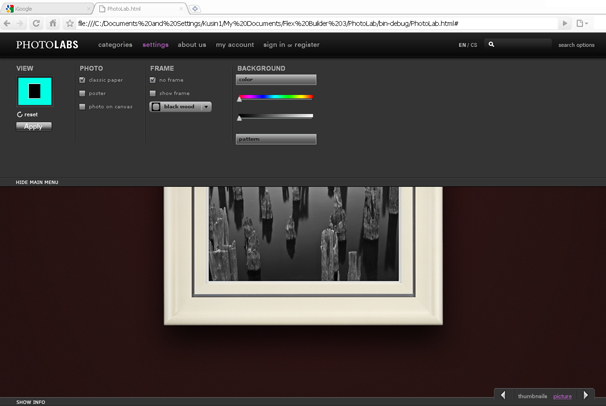 PhotoLabs zprostředkovává prodej profesionálních fotografií. Předností e-shopu je možnost simulace zobrazení různých rámů a to i na odlišných pozadích či tapetách.