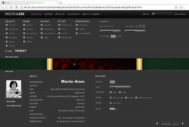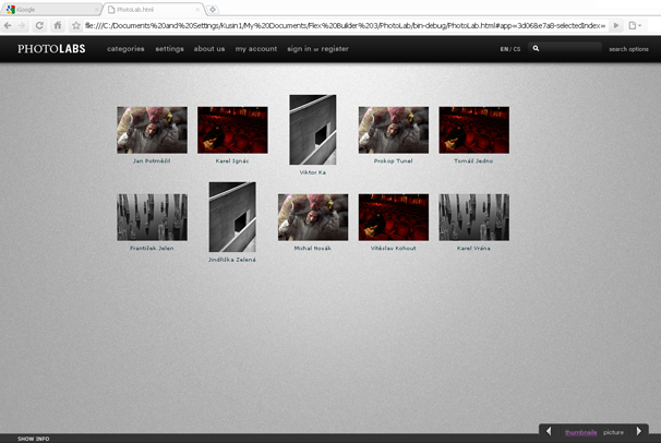 Vizualizovaná maketa vytvořena v Adobe Flex Builderu.