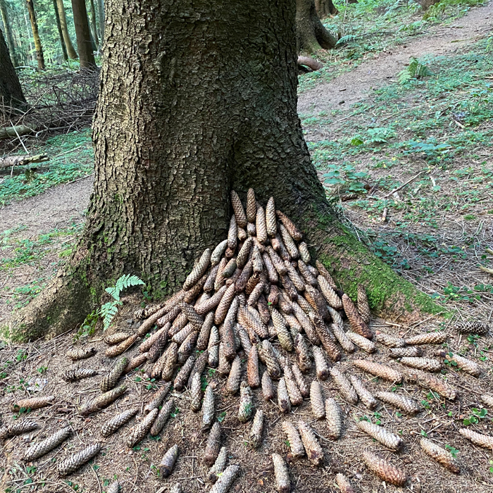 Co by se stalo, kdyby se popadané šišky chtěly dostat znovu na strom? Přesně tuto situaci jsem se snažil zachytit pomocí mého Land art na plenéru 2021