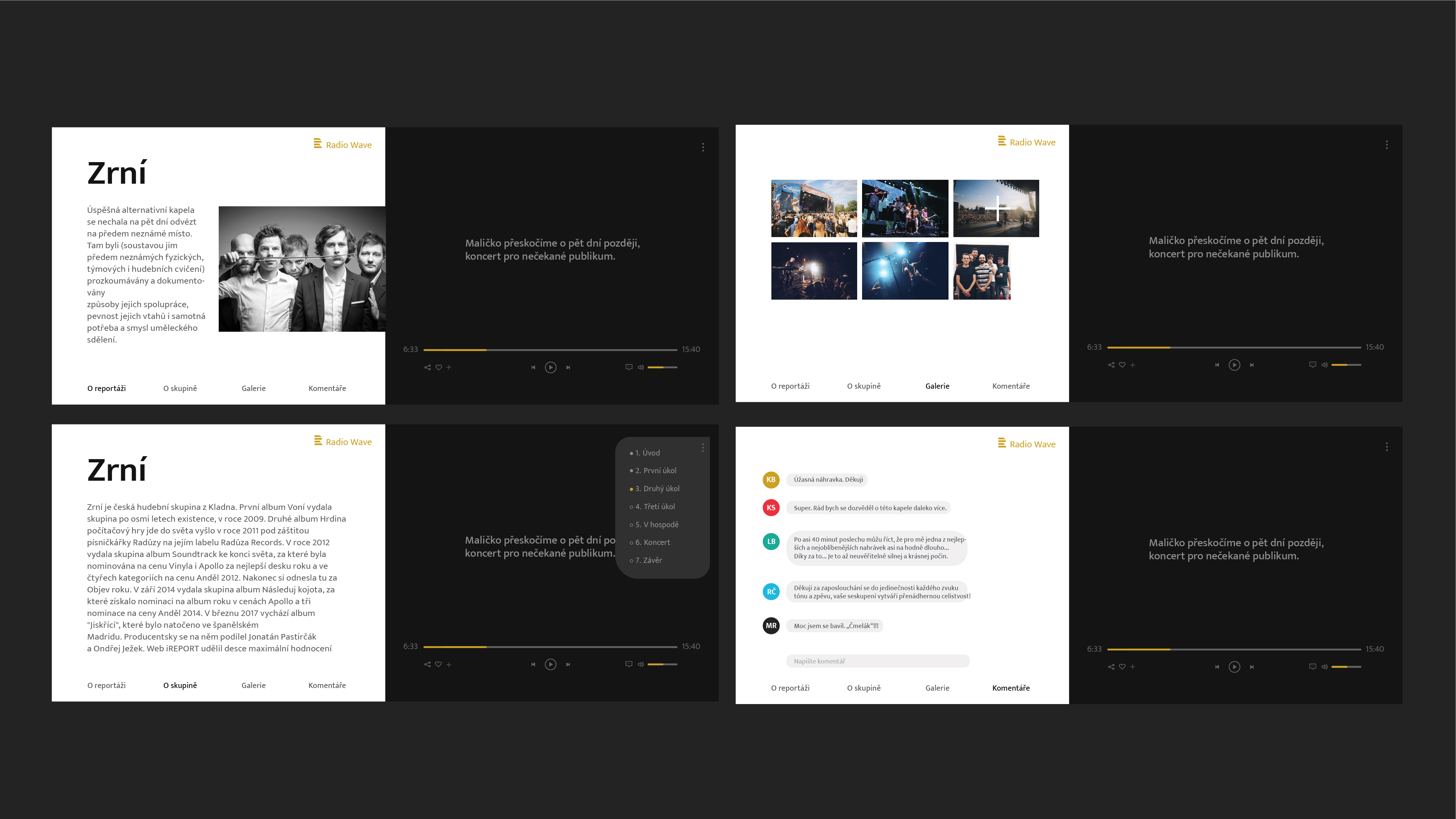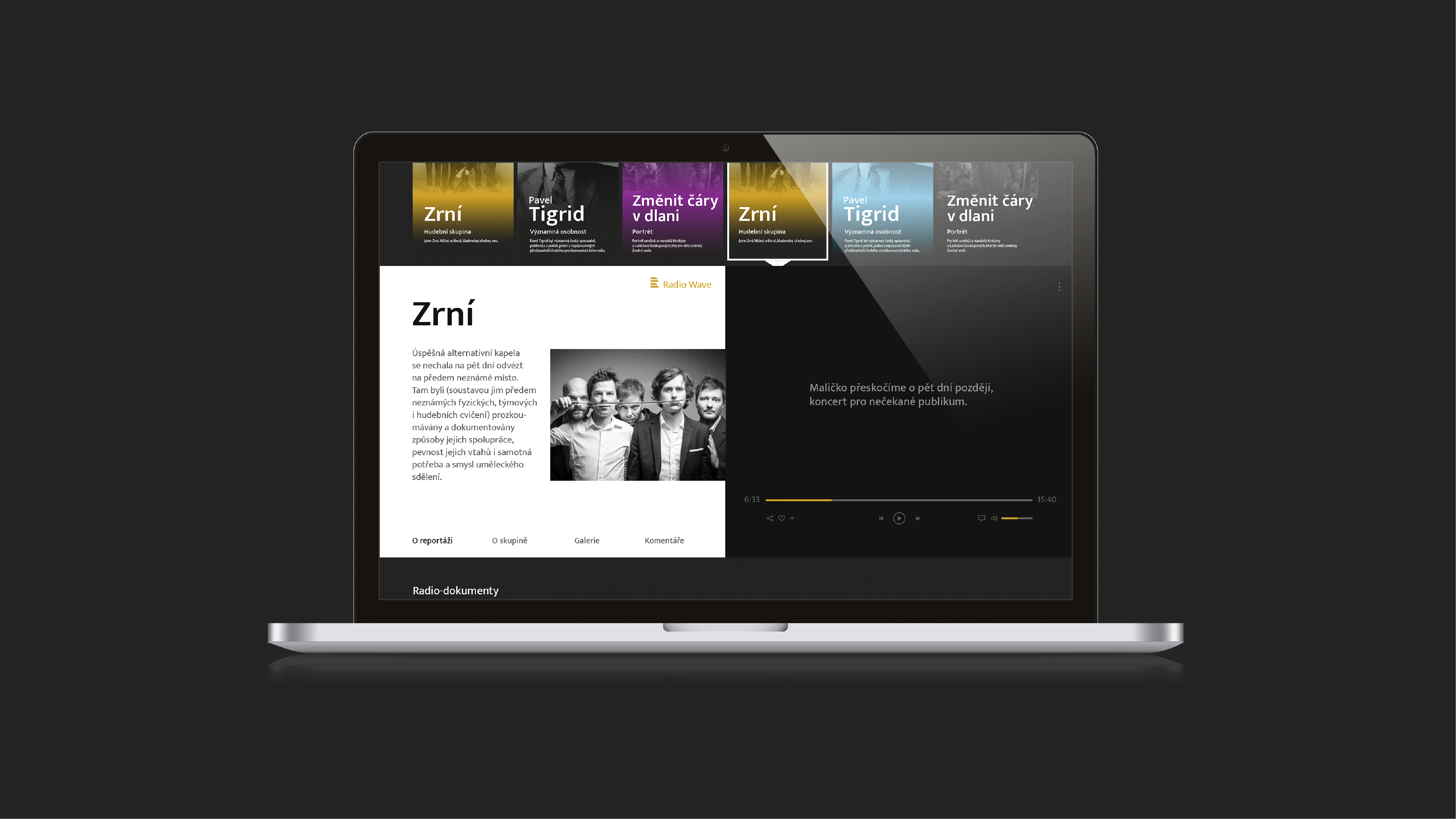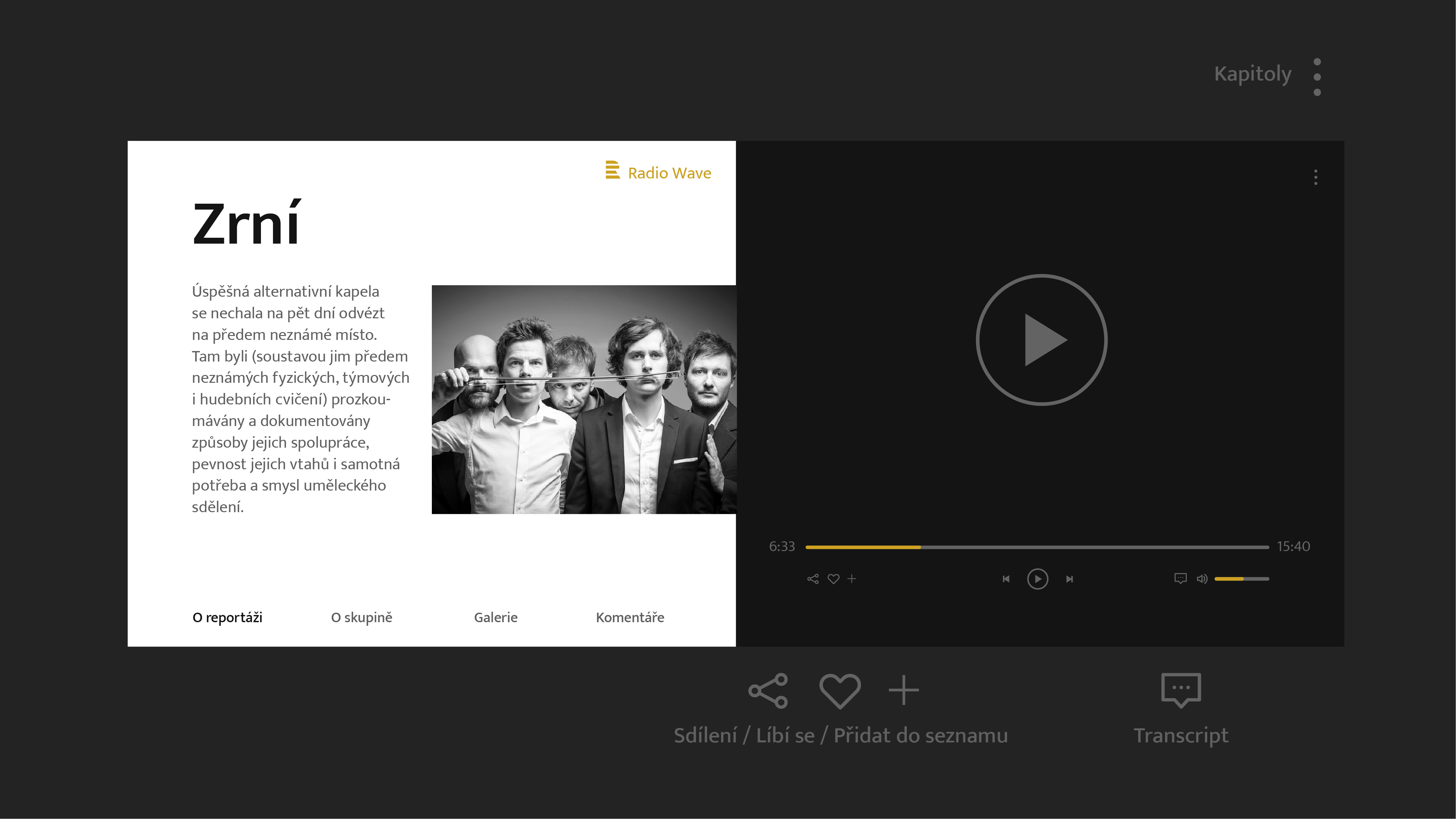 Tento hashtag můžu považovat za nosnou myšlenku své práce. Primárním záměrem u tohoto projektu bylo schromáždit všechny podcasty napříš všech stanic Českého rozhlasu na jedné jediné stránce, kde by si je mohl uživatel snadno najít a poslechnout, nejlépe si odnést některou informaci, kterou za dobu poslechu získá. Proto jsem se také snažil hodně zaměřit na vzhled přehrávače, jehož pravá strana je statická, ale levou může posluchač volně pohybovat a pročítat přidané materiály, komentáře, nebo prohlížet fotografie.