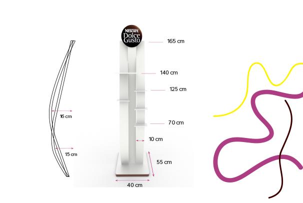 Jedno pohledový pop stojan pro firmu Dolce gusto.