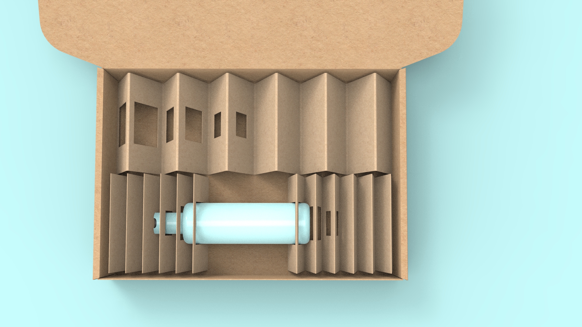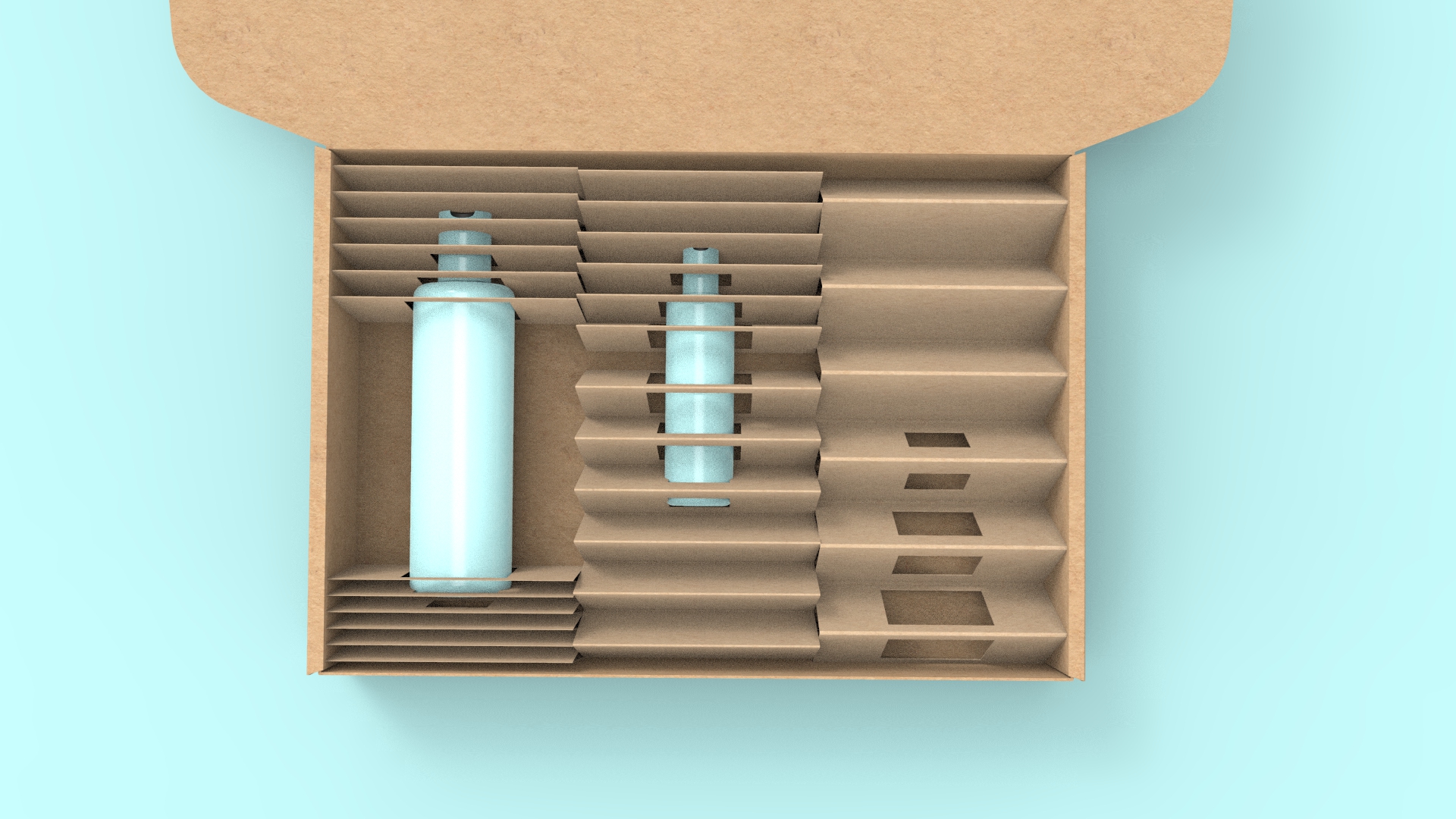 Nové řešení expediční krabice pro firmu Manufakturu, využívající papírového doplňku k uzamčení přepravovaného produktu a zvýšení kultury e-shopového obalu.