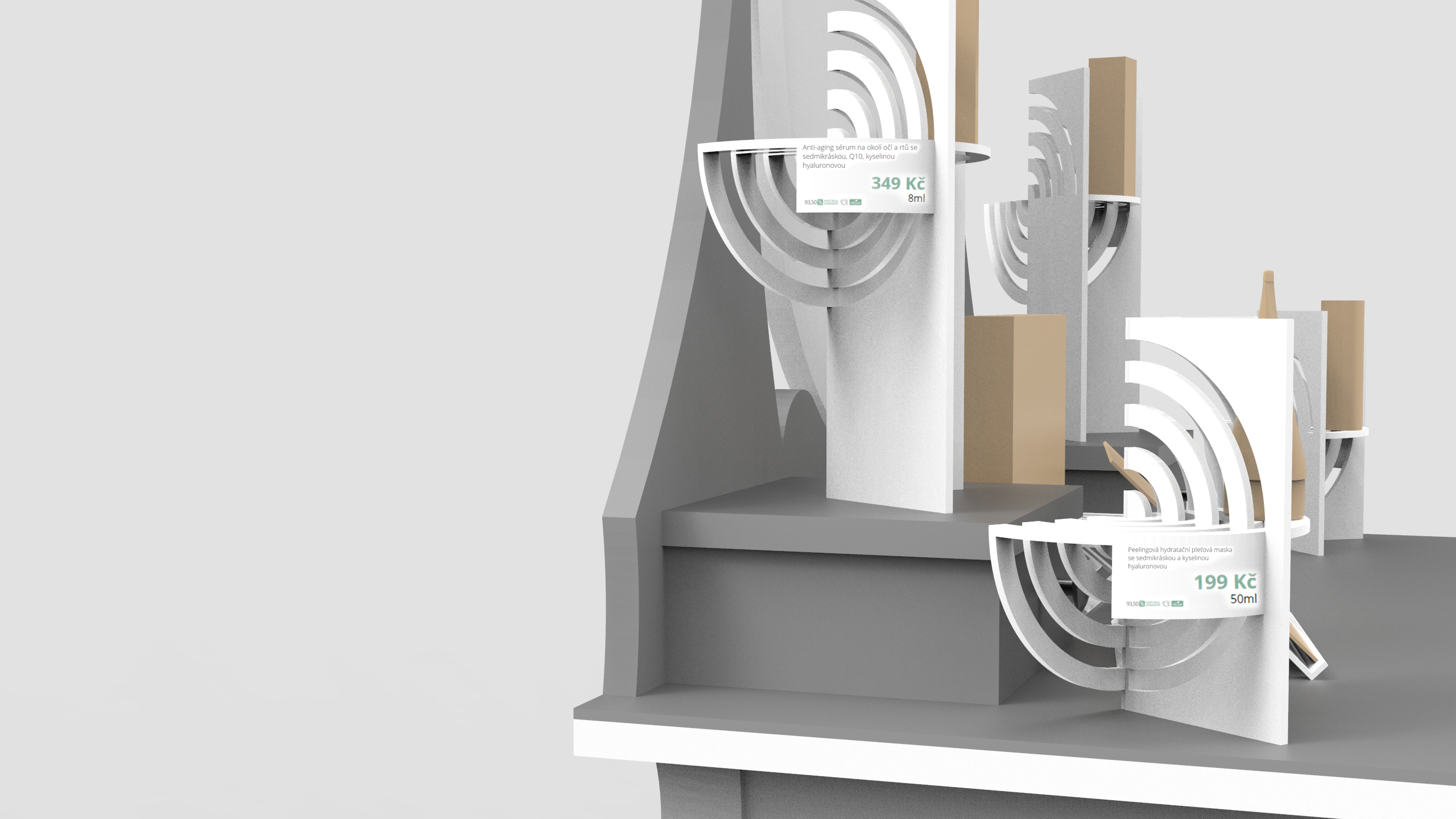 Návrh reklamních stojanů na kosmetické produkty značky Manufaktura v rámci soutěže.