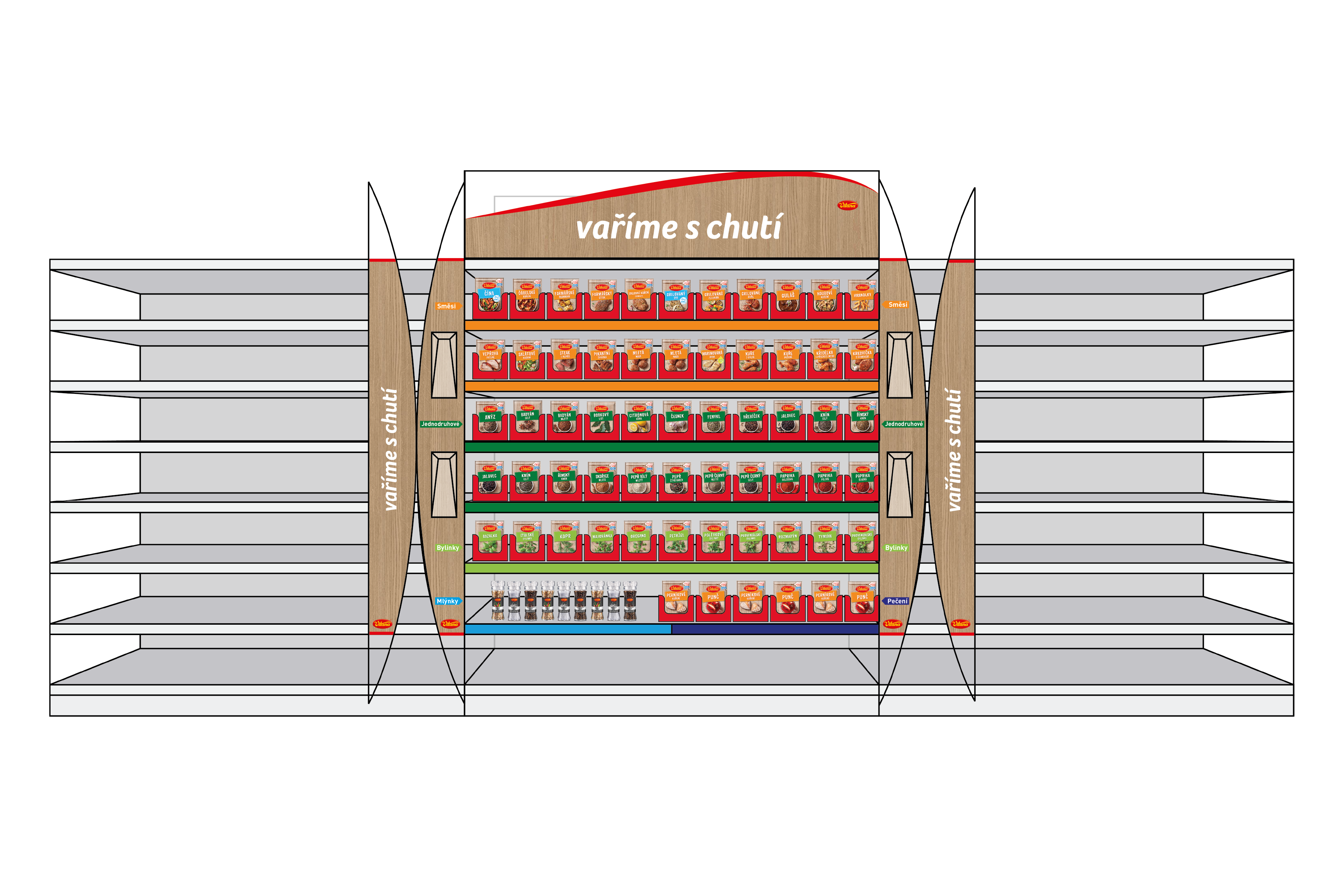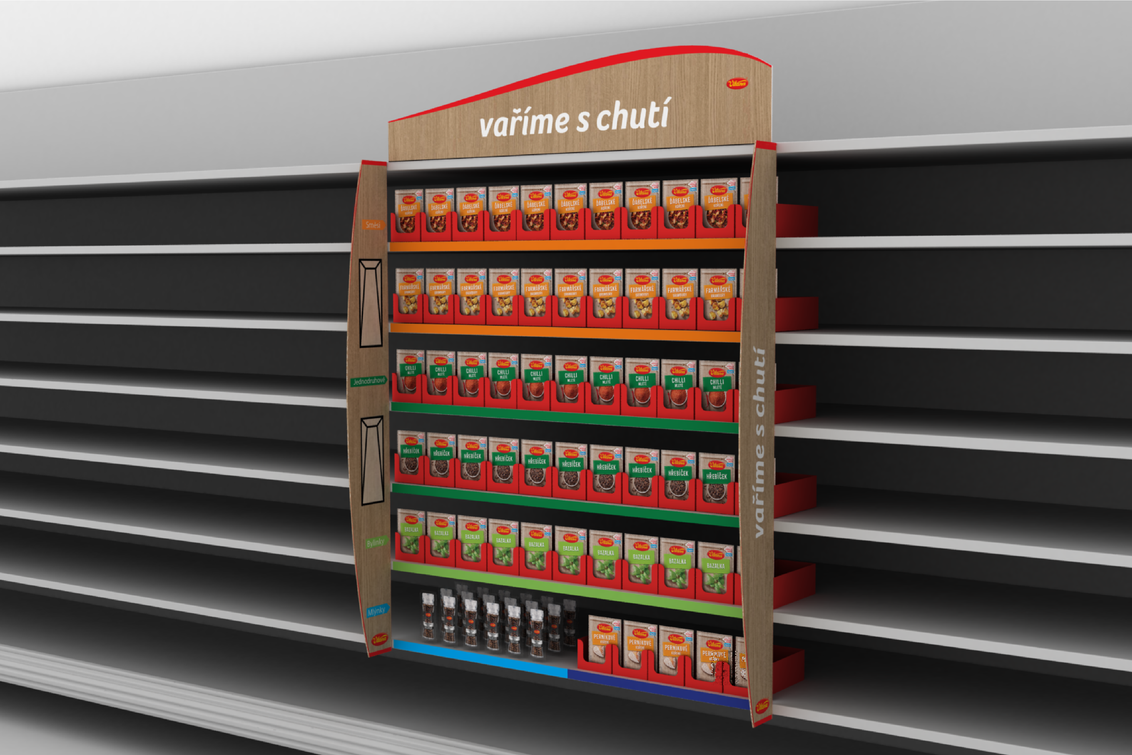 Řešení návrhu spočívá v grafickém návrhu regálového čela pro usnadnění orientace mezi různými druhy koření. Návrh dále pracuje s propagací skrz sociální sítě pomocí hashtagů.