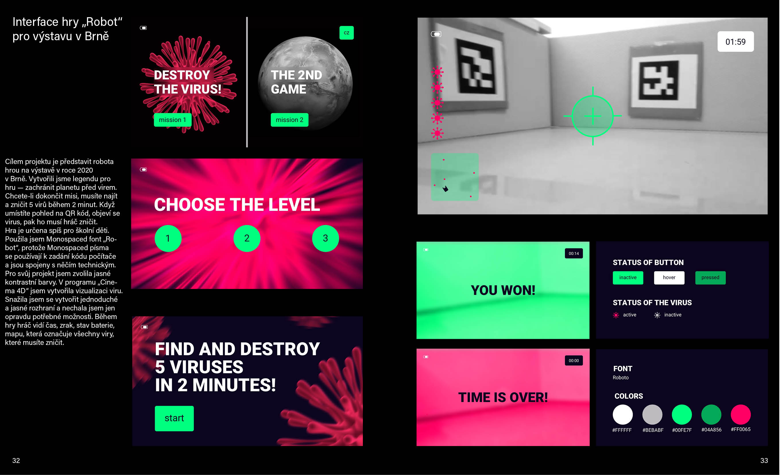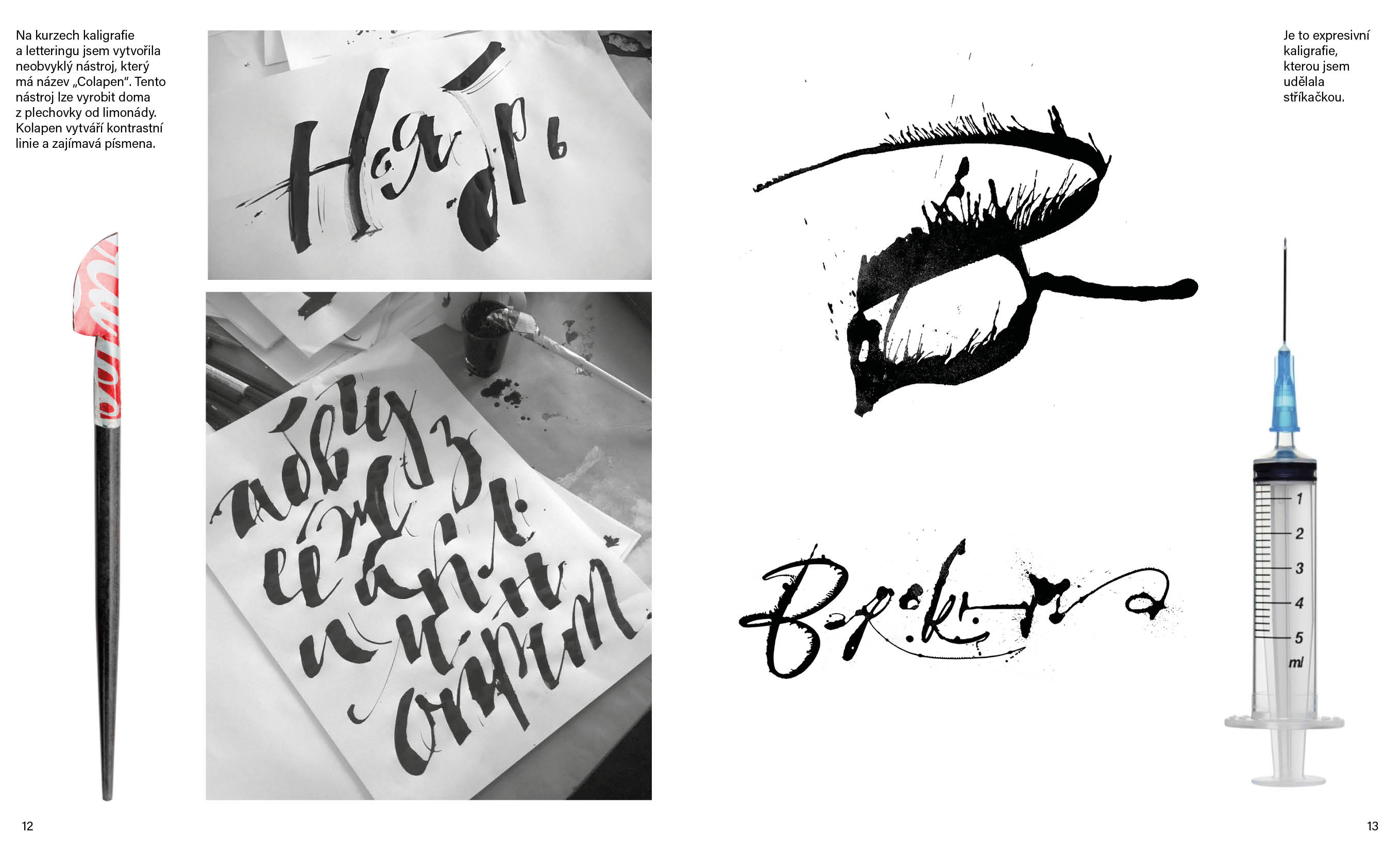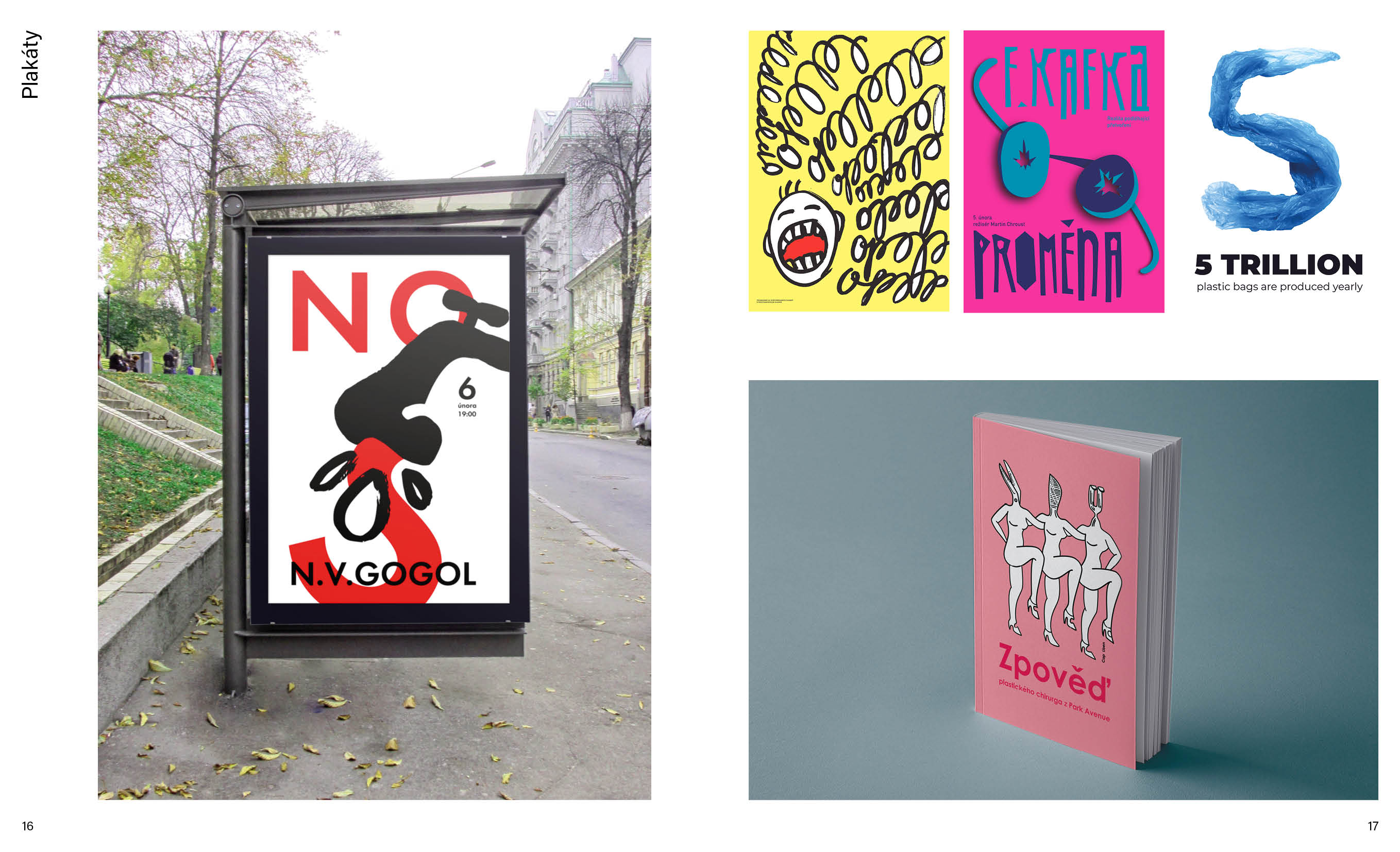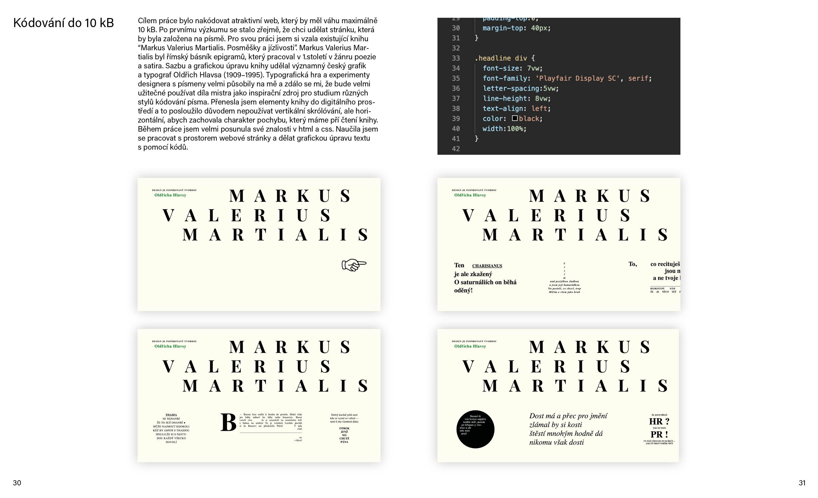 Cílem portfolia bylo, aby mě charakterizovalo jako kreativní designérku. Tady nejsou všechny mé práce, ale jen ty nejlepší. Do portfolia jsem zařadila náčrtky, typografické experimenty, popsala, jsem jak se projekty vyvíjely a jaké nástroje jsem použivala.