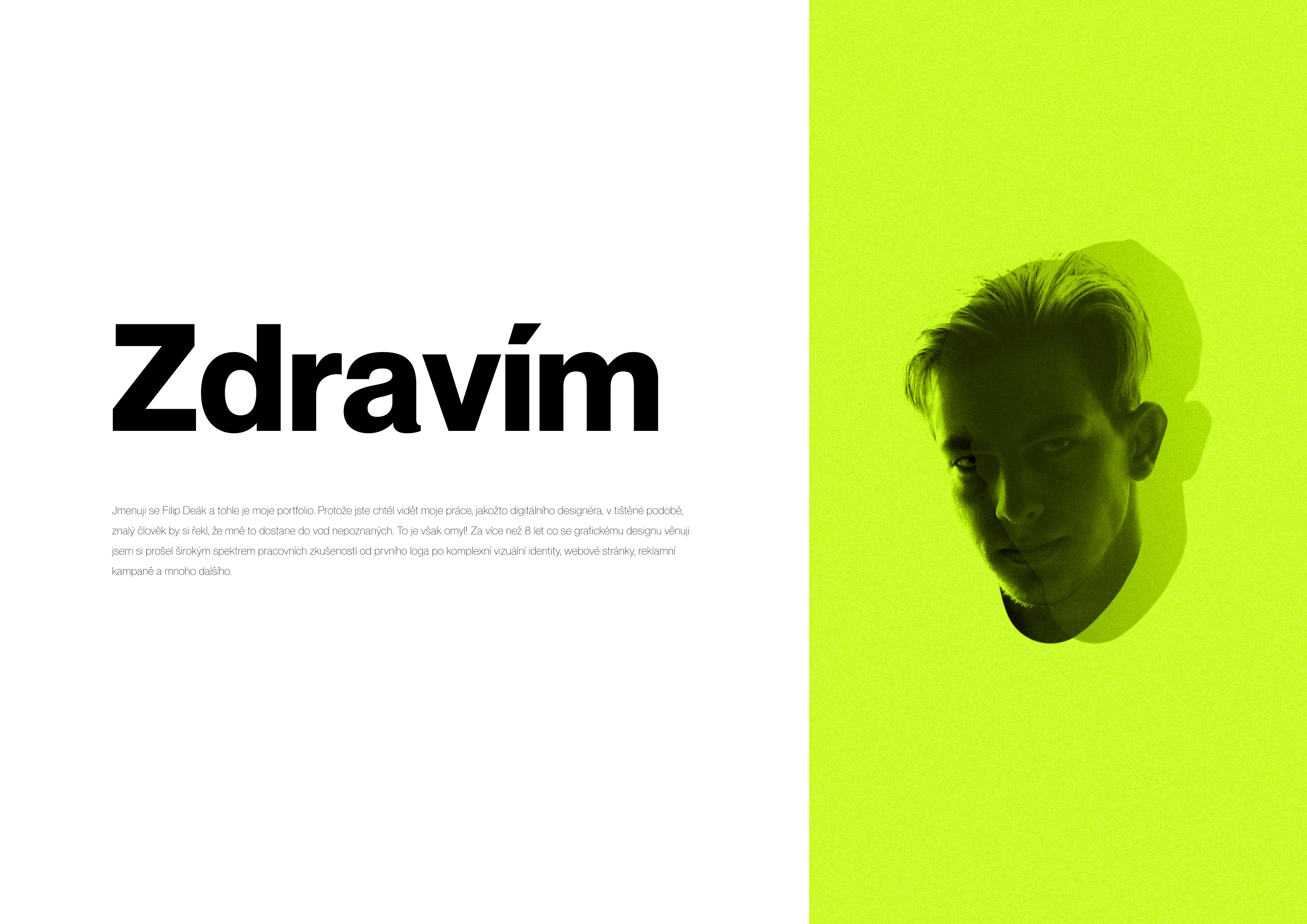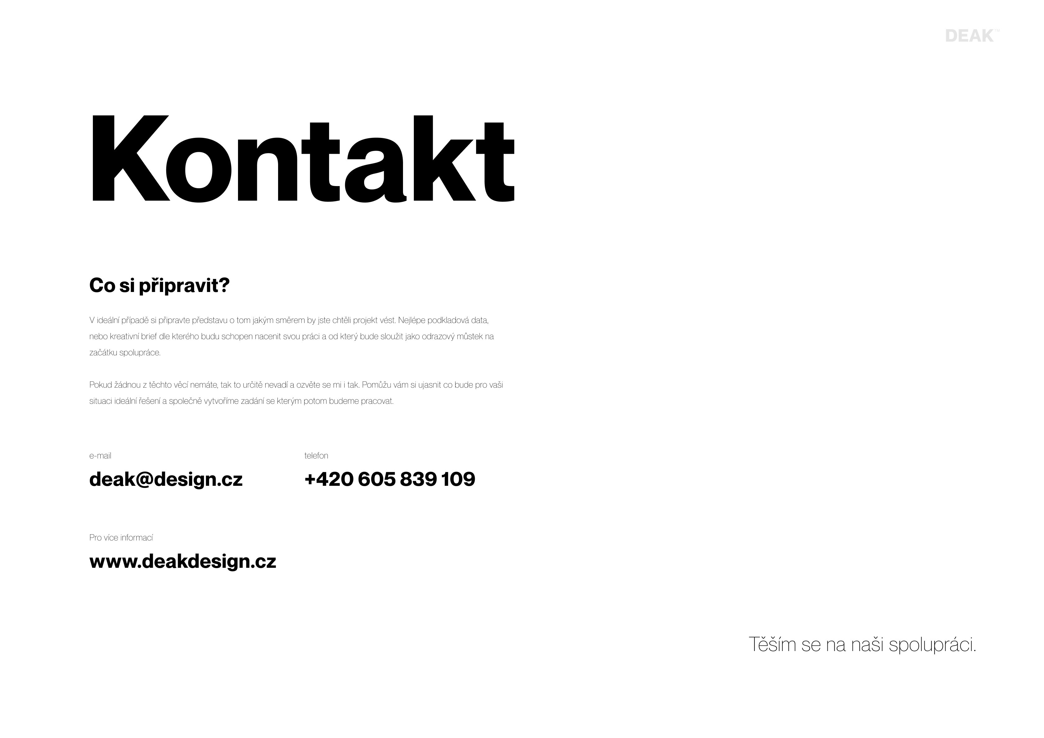Kontrast je zde jak po typografické stránce, tak barevné a především proporční. Jsem zastáncem toho, že dobrá práce by měla mluvit sama za sebe, být tzv. všeříkající,