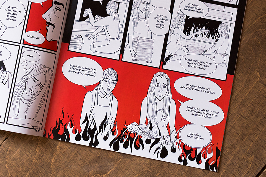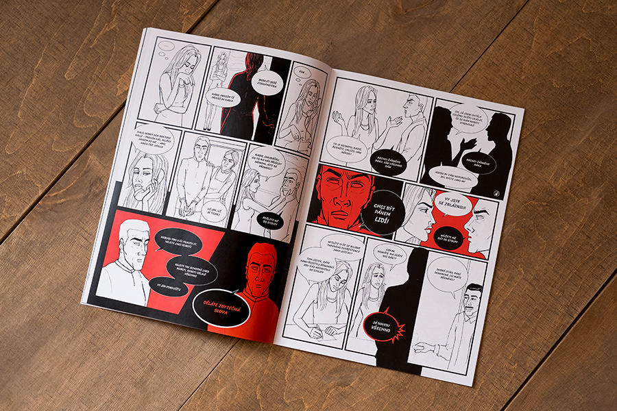 Při práci s texty jsem se snažila různými prostředky zdůraznit akcenty v řeči, např. tvarem bublin při výkřiku.