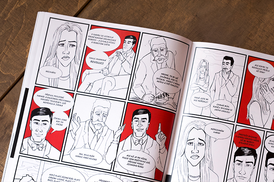 Bakalářská práce, jejimž tématem byla ilustrovaná kniha s rozšířenou realitou. Výsledkem je komiks podle knižní předlohy Karla Čapka. Ke zpracování jsem si vybrala první dějství.