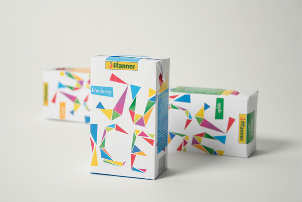 Tetra Pakový obal na juice značky Pfanner o objemu 250 ml.