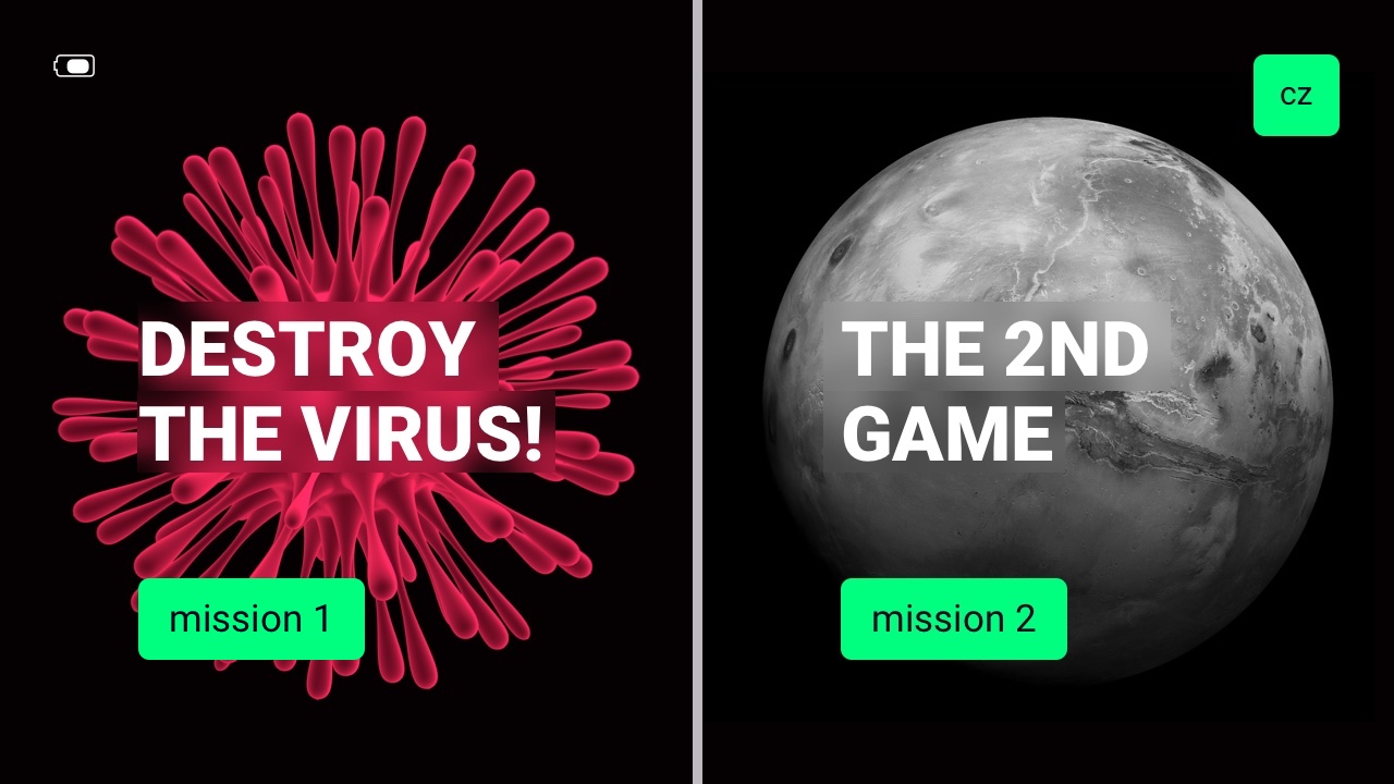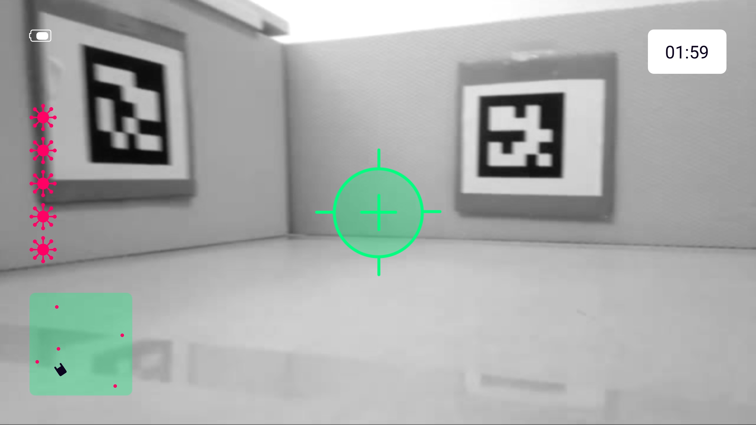 The aim of project is to present a robot through the game at the exhibition in 2020 in Brno. We made up the legend for the game — to save the planet from the virus. To complete the mission you must find and destroy 5 viruses within 2 minutes. When you hover the sight on the QR-code, a virus appears, then a player must destroy it. The game is designed more for school children.