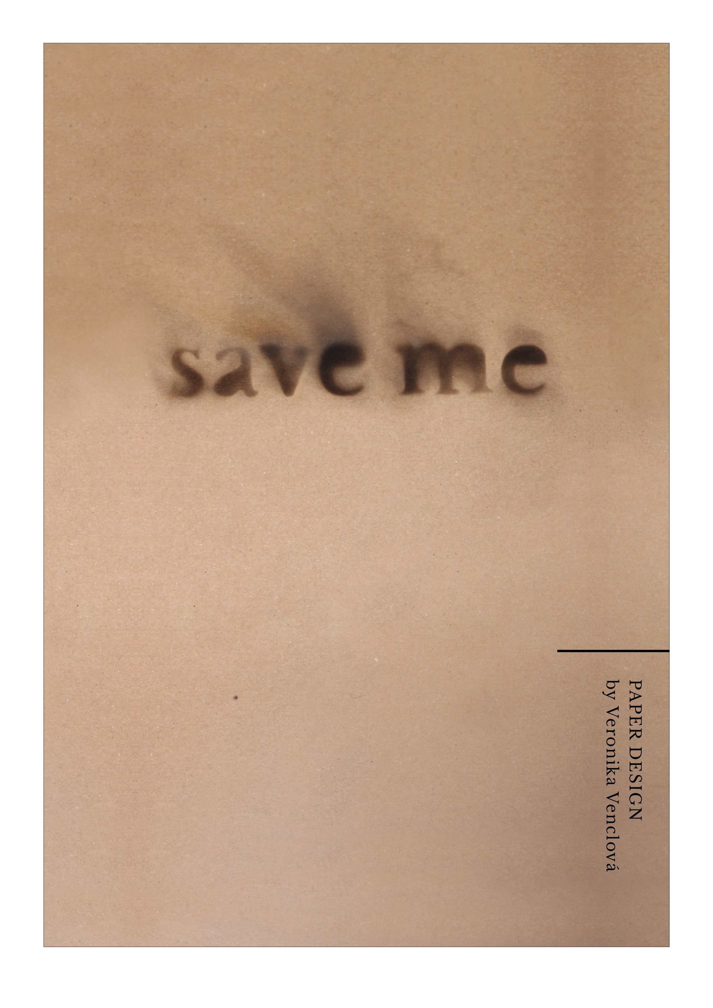 Téma pro práci s písmem v prostoru je "Scream of materials". Zvolila jsem si jednotlivé materiály a jejich zvolání s myšlenkou ekologie – papír/save me; dřevo/treat me; plast/limit me; kov/recycle me, kdy bychom měli více šetřit papír, vážit si stromů a dřeva, omezit potřebu plastů a recyklovat kov. Tyto "výkřiky" jsem pak různými způsoby zvěčnila do těchto materiálů (plamenem, pájkou, pískováním a vyškrabováním).