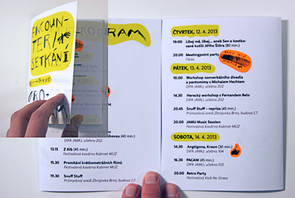 Návrh nálepkového vizuálneho štýlu pre divadelný festival Setkání / Encounter.